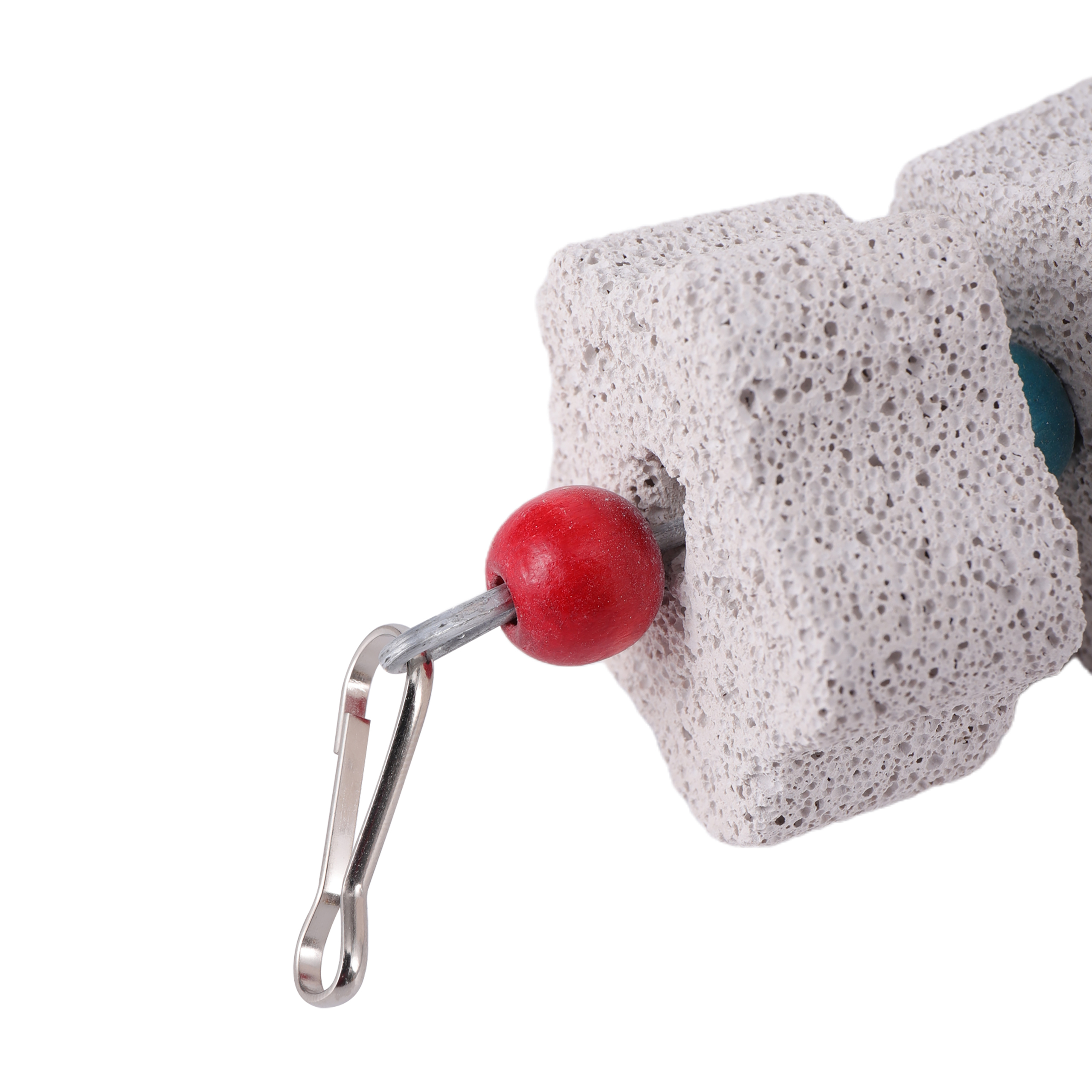 It can be made of non-poisonous minerals,colored beads can be dyed with food dyes,and it can be nontoxic and the molars of birds can stand.