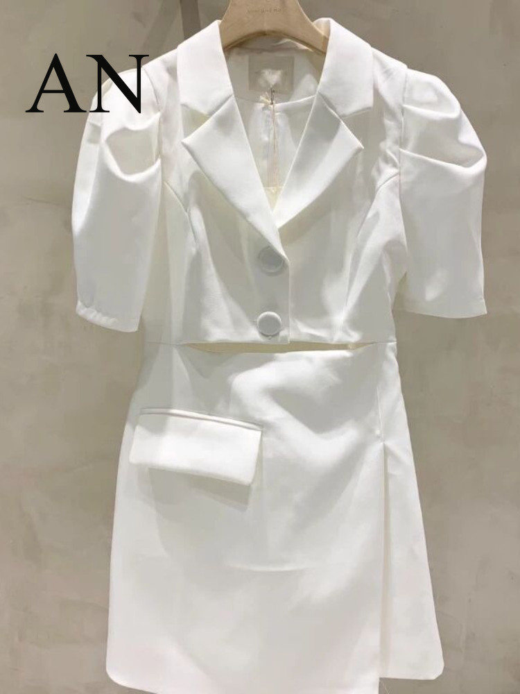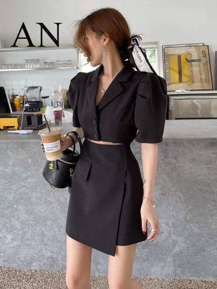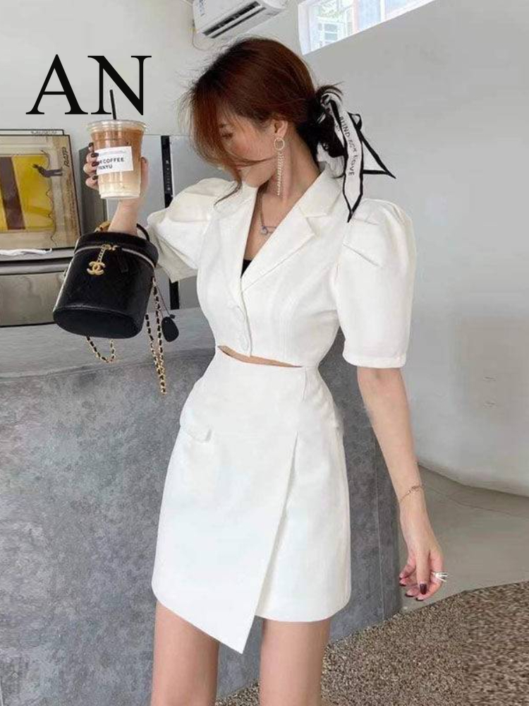 Suit SkirtSet Women Summer Bubble Short Sleeve Loose Temperament Suit Skirt Set Blazer and Skirt Set Skirt Set