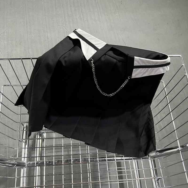 2022 Summer Black Mini Pleated Skirts Fashion Runway Elastic High Waist Letter Printed A-line Skirt Women Sexy Luxury Clothes.A0773