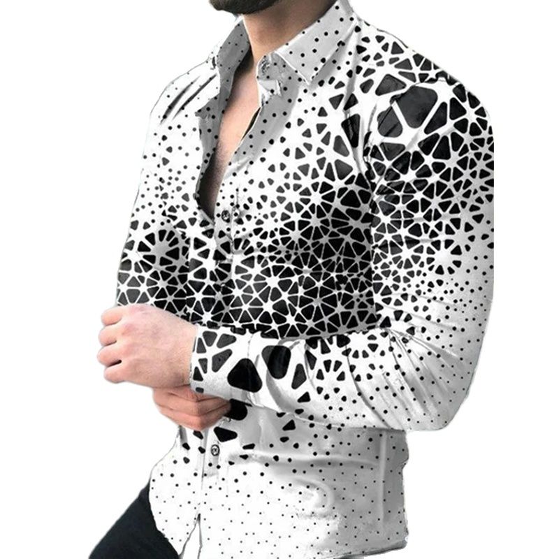 Summer Men's Shirts Long Sleeve 3D Printed Multicolor Dot Single Breasted Autumn Men's Yacht High Street Camisas De Hombre