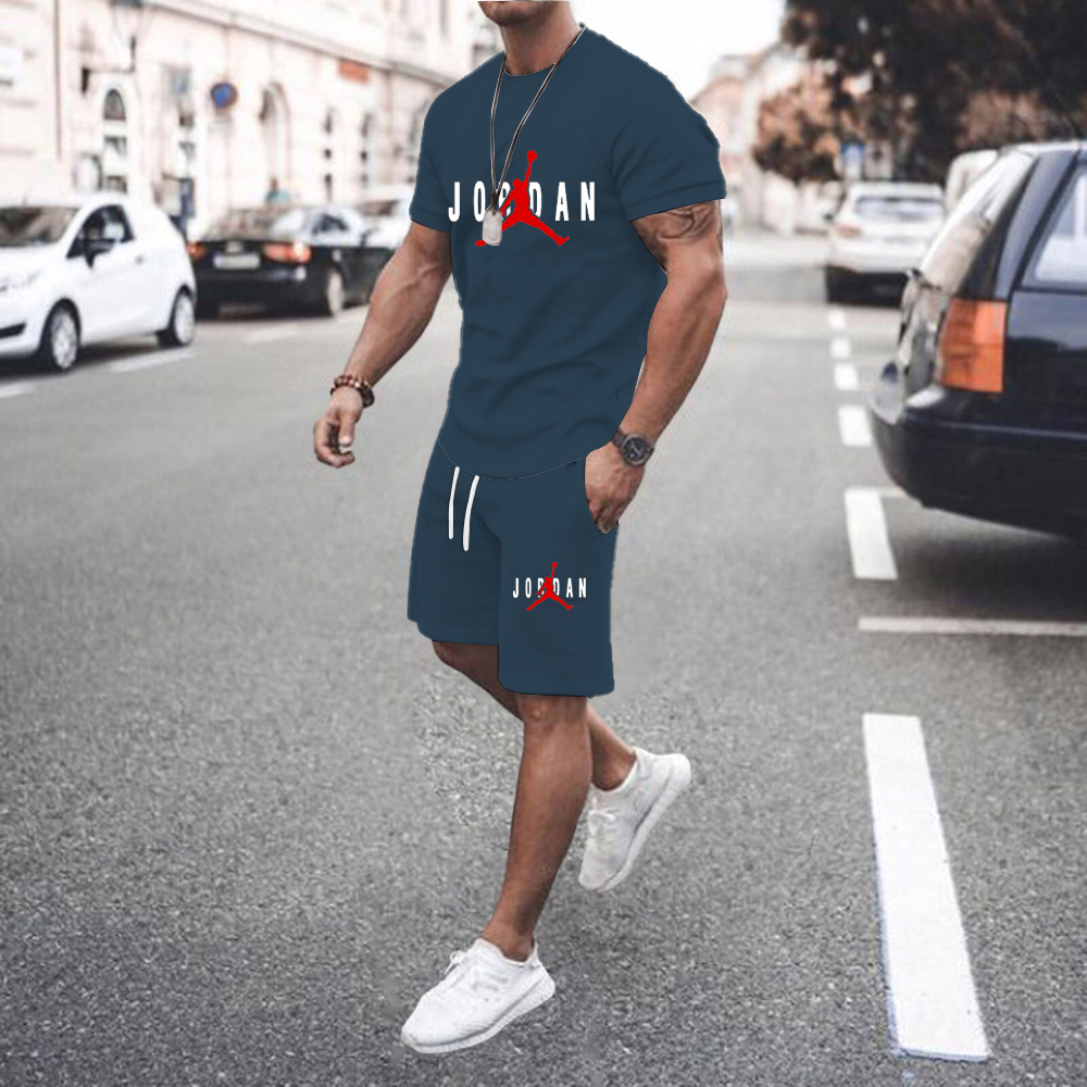 Summer Men's Sports Suit 3D O Collar Short-sleeved and Shorts Two-piece Men's Fitness Jogging Sportswear