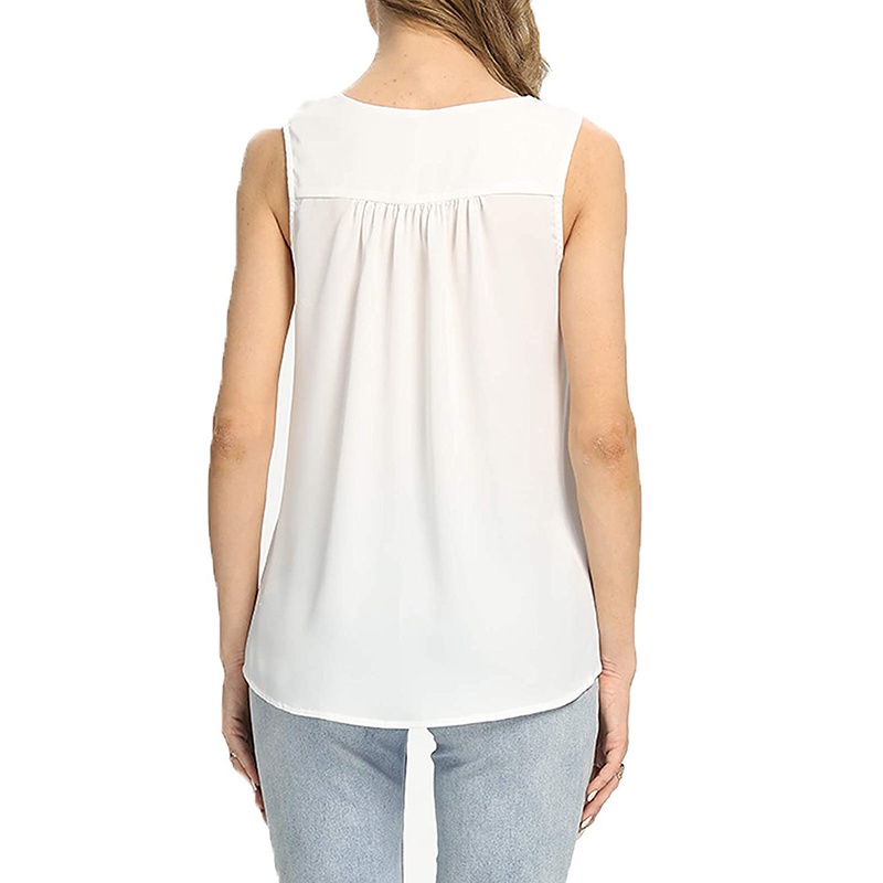 Summer Tanks Tops For Women SHAPERIN Solid Sleeveless Tunic Office Lady Elegant V Neck Camisole Casual Chiffon Baggy Camisa