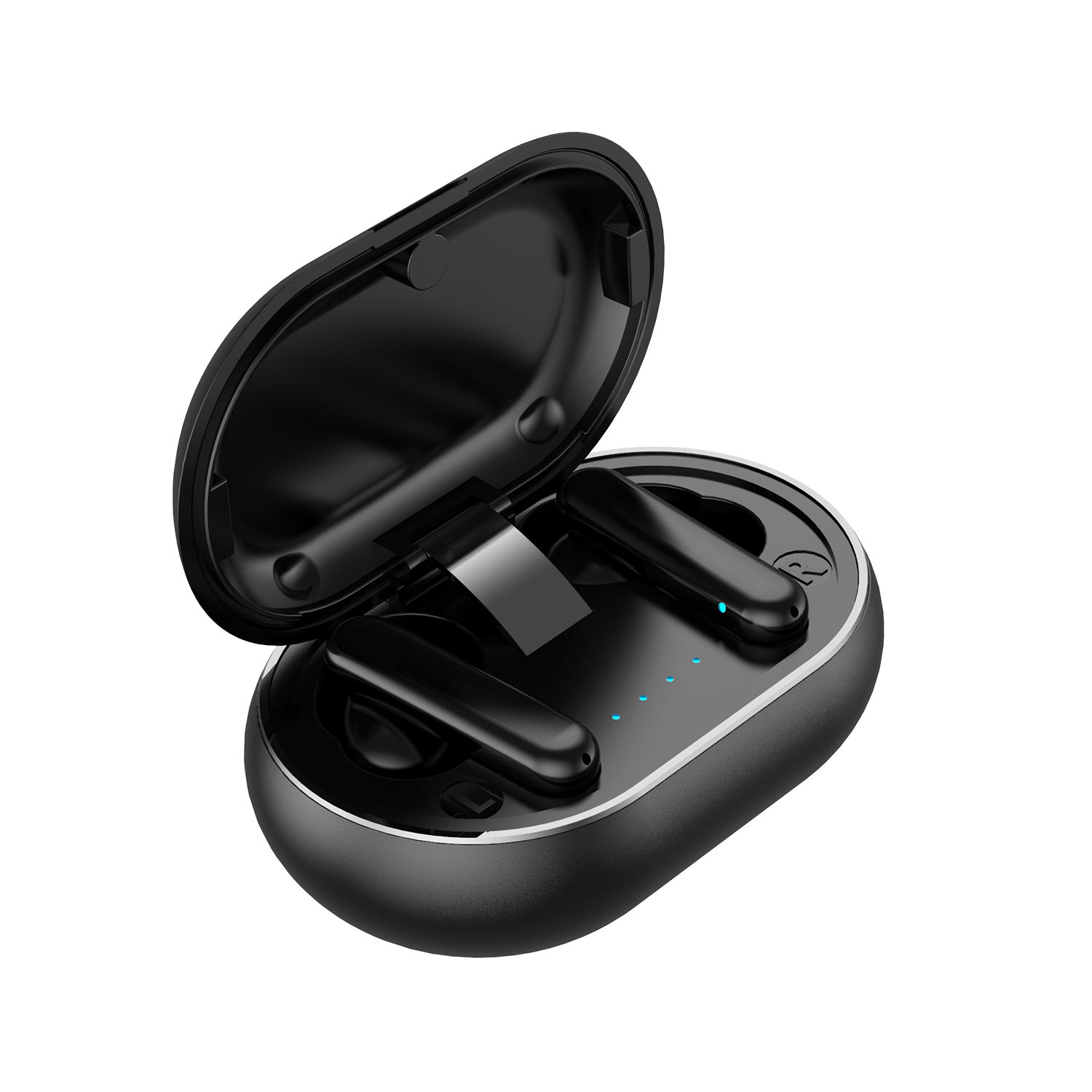 A complete set of standard configuration: host x1 pair, charging compartment 1, USB cable x1, manual x1, ear caps 2 pairs, packaging x1