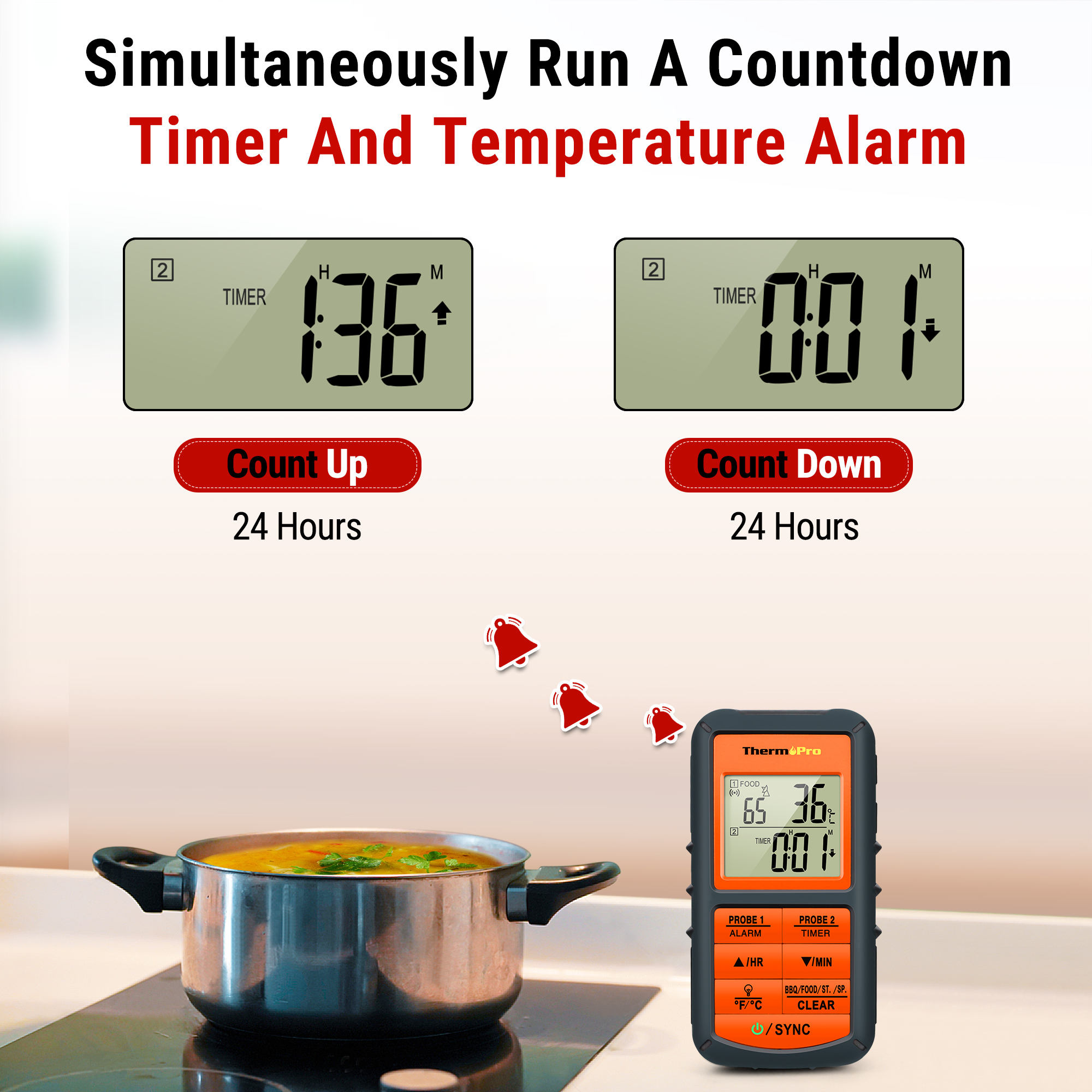 ThermoPro TP08C is a dual probe Digital Wireless thermometer that allows you to accurately cook by monitoring both your meat and oven temperature remotely from 500 feet away. Stop getting up and sitting back down to check on your meat and just await the TP-08C alarm when your meat is cooked to perfection or when the BBQ/OVEN/SMOKER is at your set temperature range.