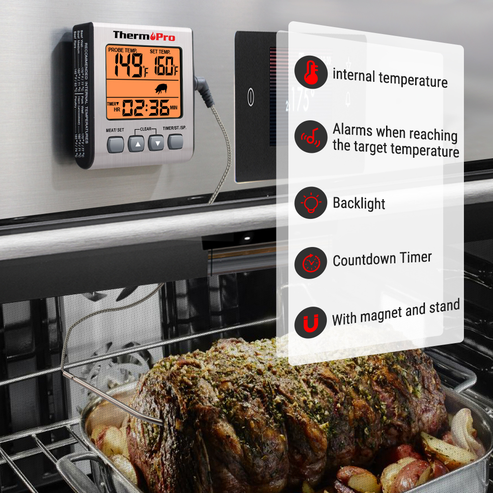 ThermoPro TP16S Digital Meat Thermometer BBQ Kitchen Cooking Thermometer With Probe Timer Backlight Oven Thermometer
