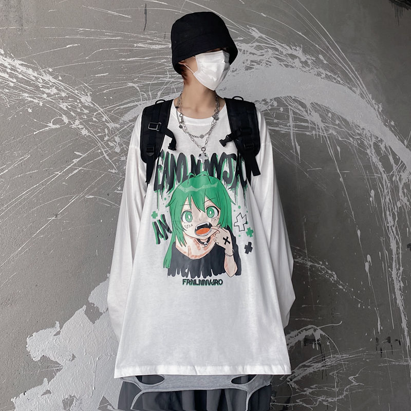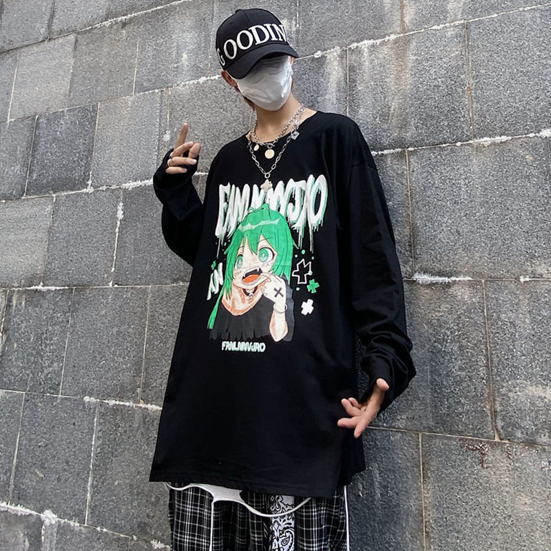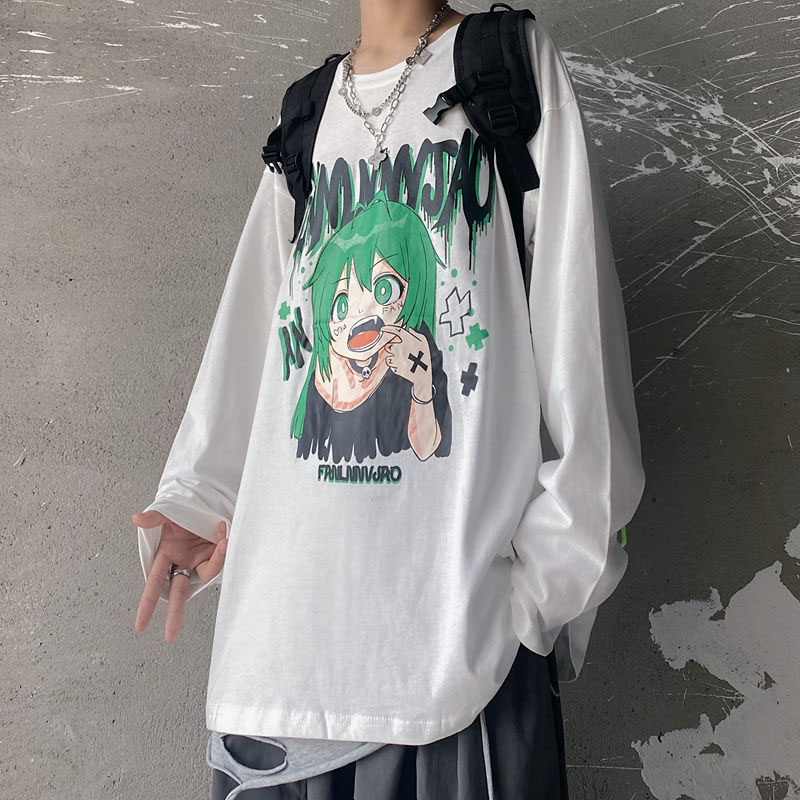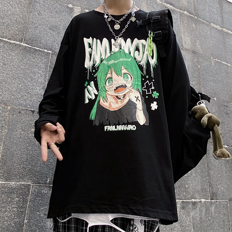 Top Harajuku Oversized T-shirt Anime Girl Graphic Loose Long Sleeve Kawaii Clothes Spring Y2k T-shirt Pulovers Aesthetic Grunge