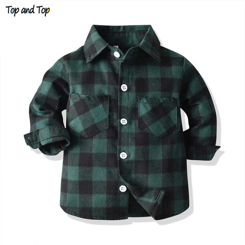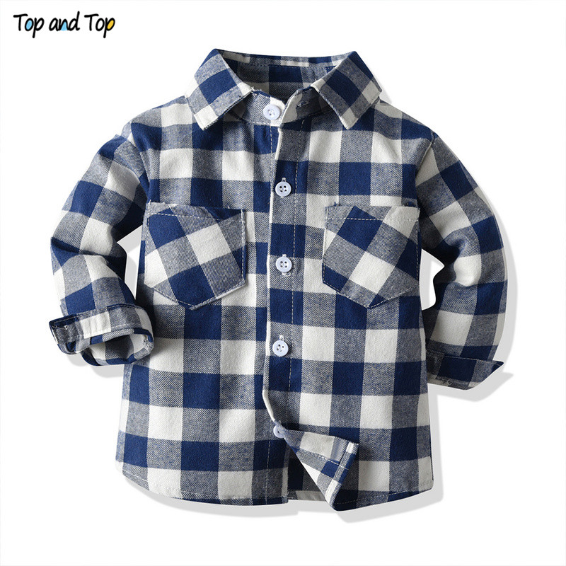 Top and Top Spring Autumn Fashion Baby Boy Long Sleeve Cotton Plaid Shirt Casual Turn-down Classic Kids Gentleman Blouses Tops