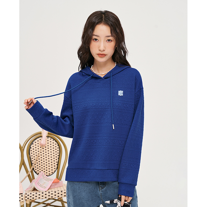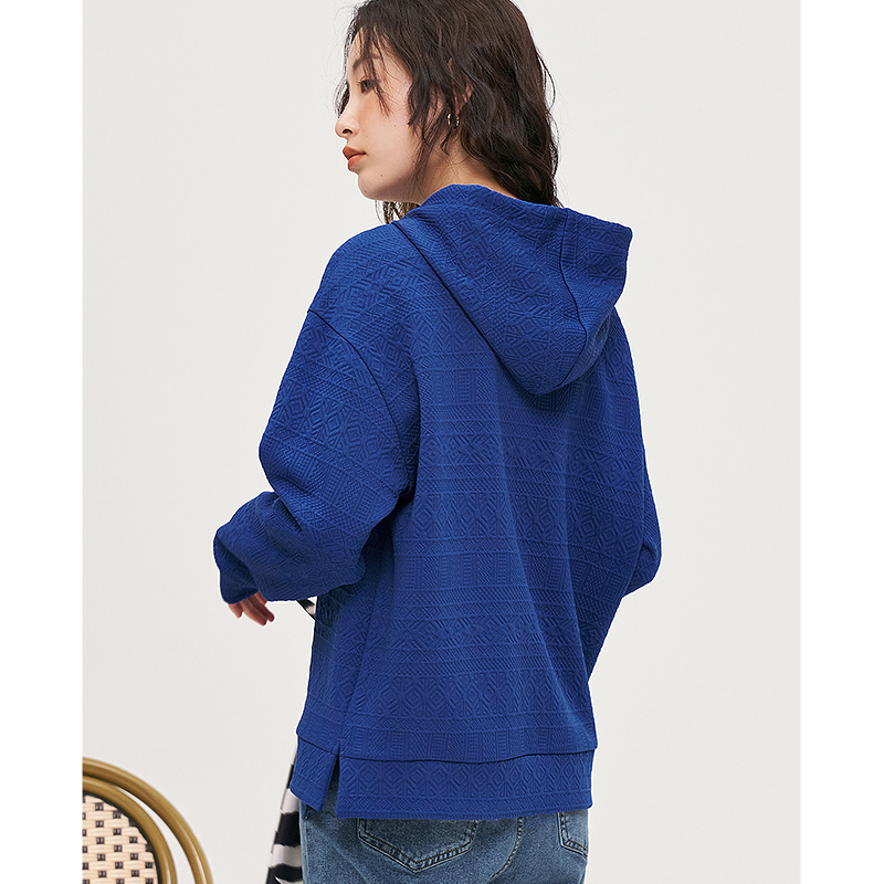 Toyouth Women Sweatshirts with Hat Autumn Long Sleeve O Neck Loose Hoodies 3D Geometric Klein Blue Chic Casual Streetwear P
