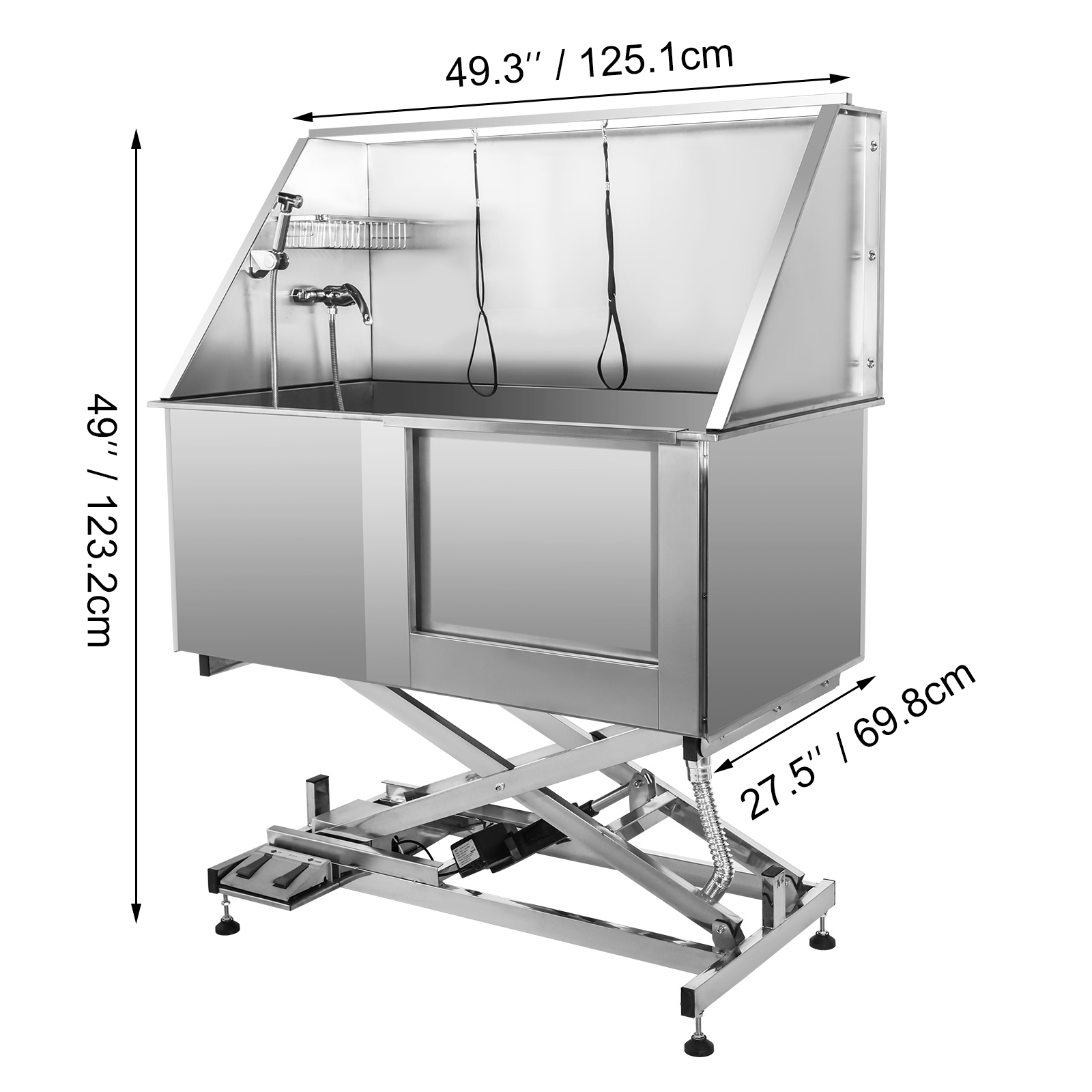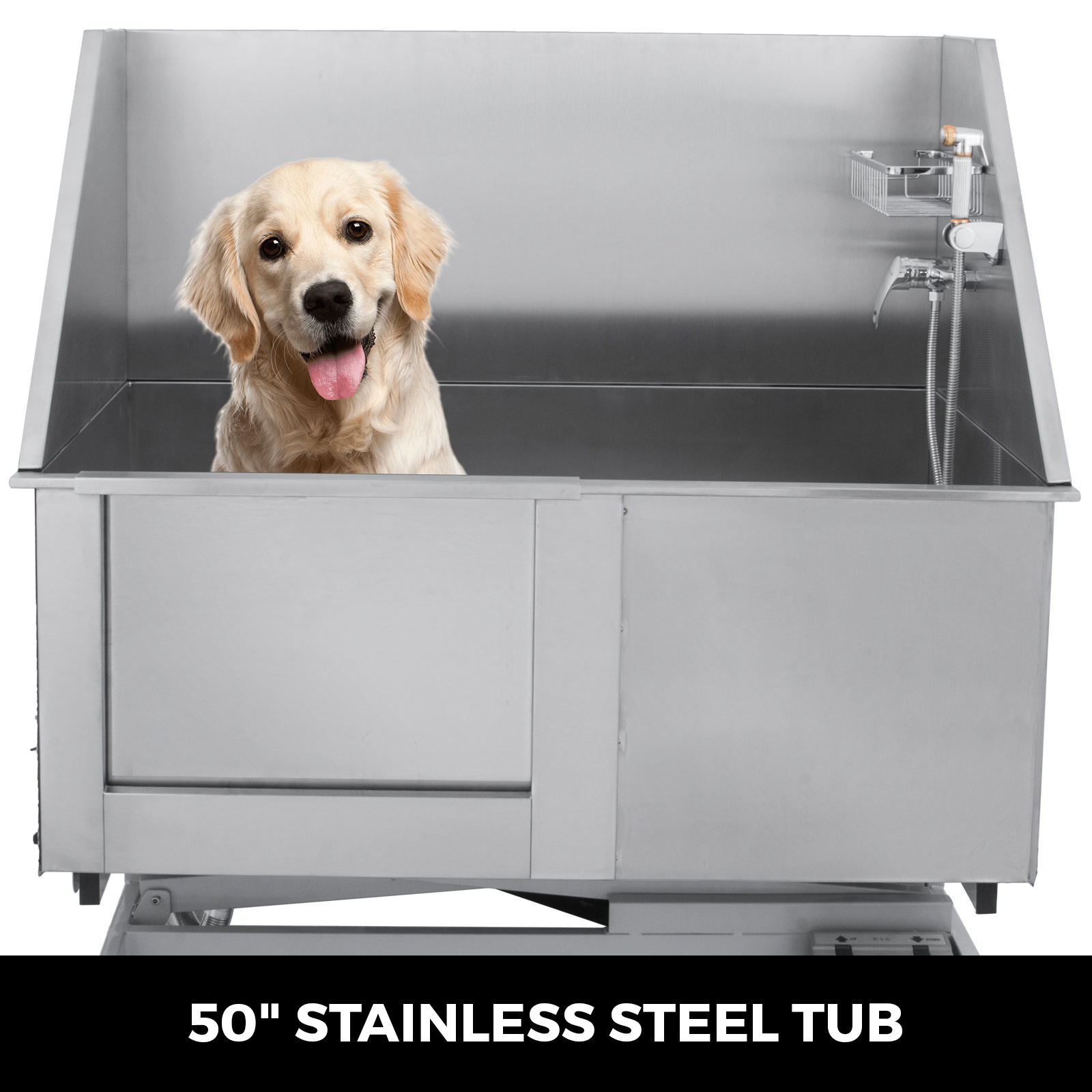 VEVOR 50 Inch Electric Pet Dog Grooming Tub With High Pressure Sprayer Stainless Steel Electric Lift Height Dog Wash Bath Tub