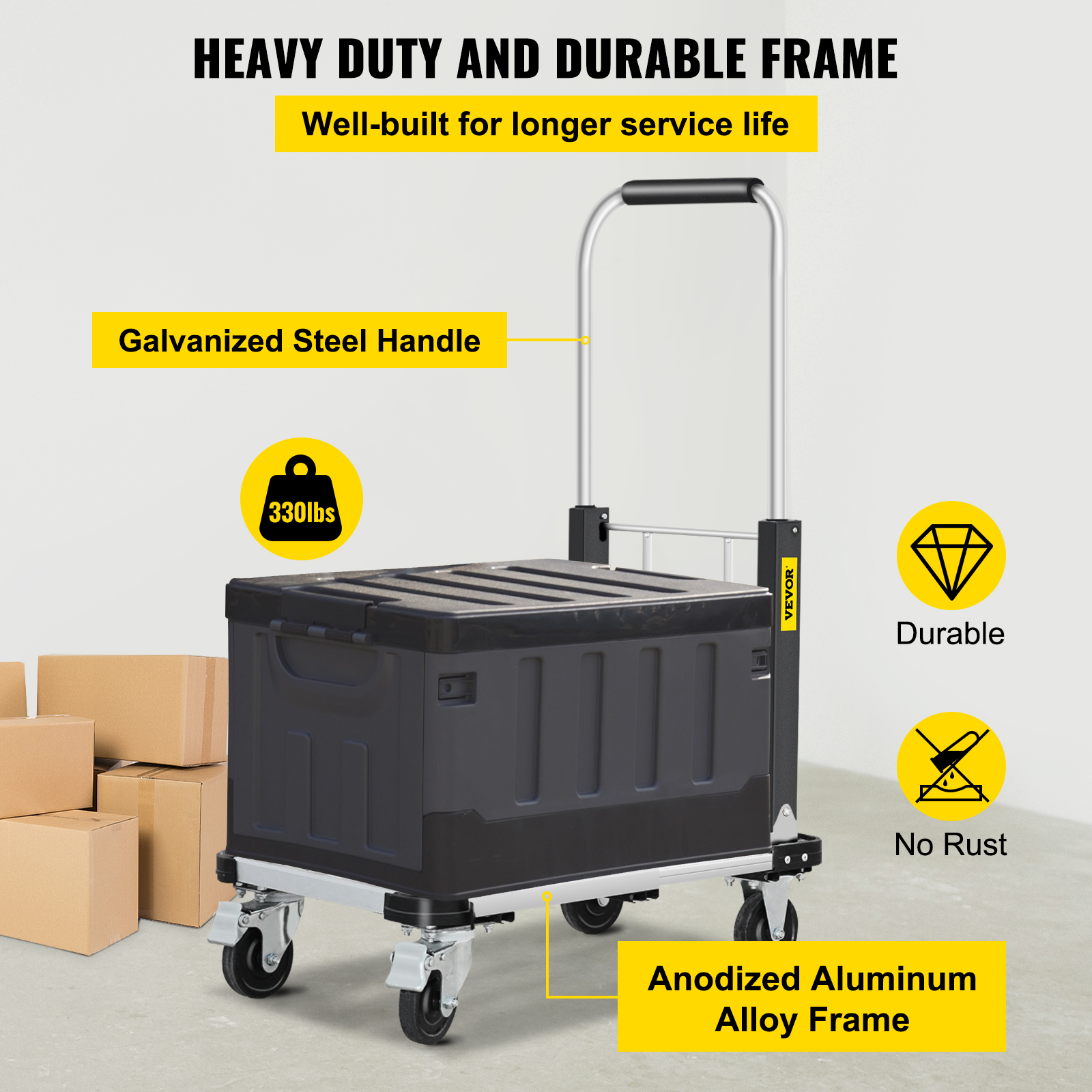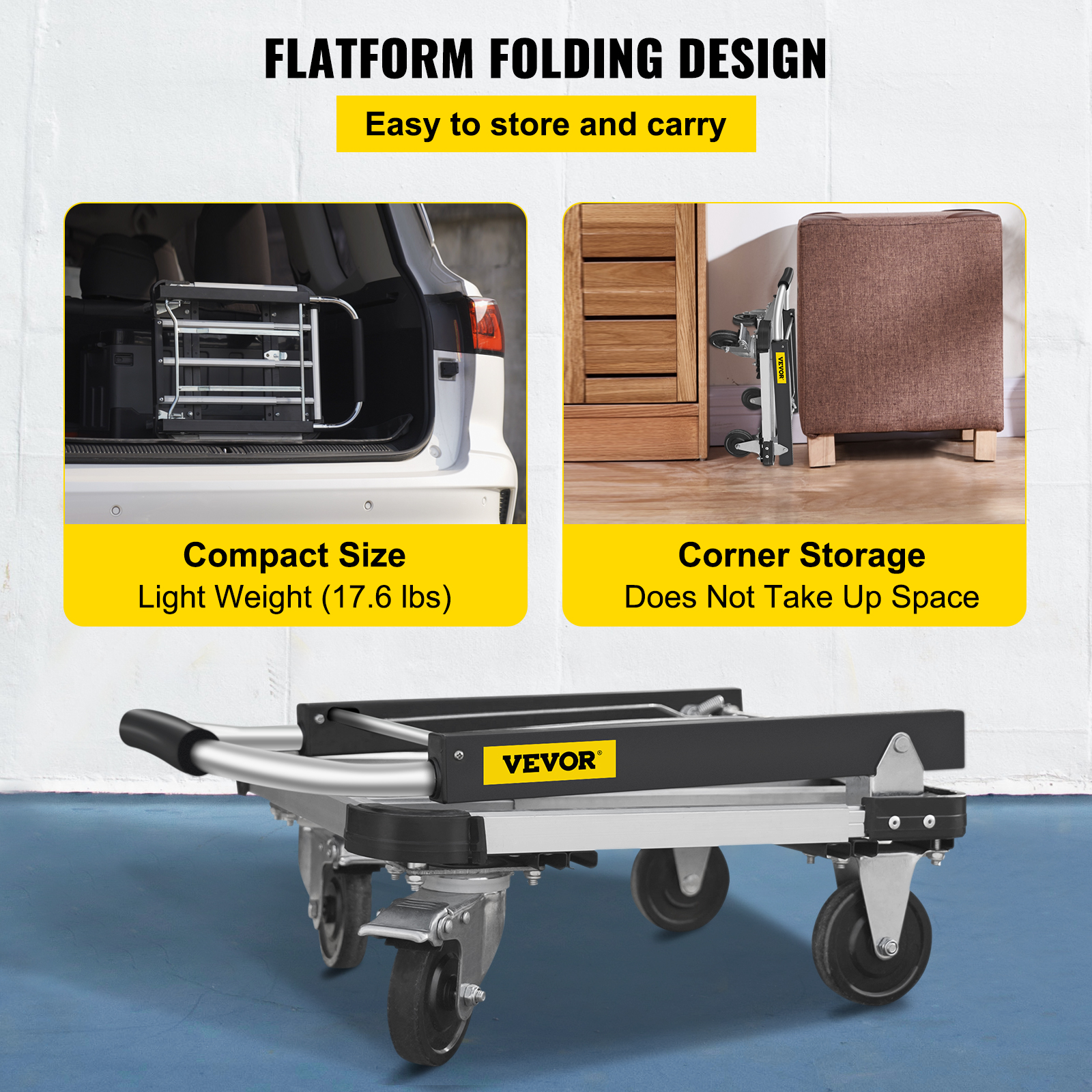 VEVOR Folding Hand Truck Dolly Cart with Wheels Luggage Trolley 330lb Capacity Solid Construction Aluminum Alloy Flatform Dolly