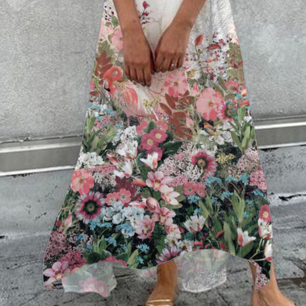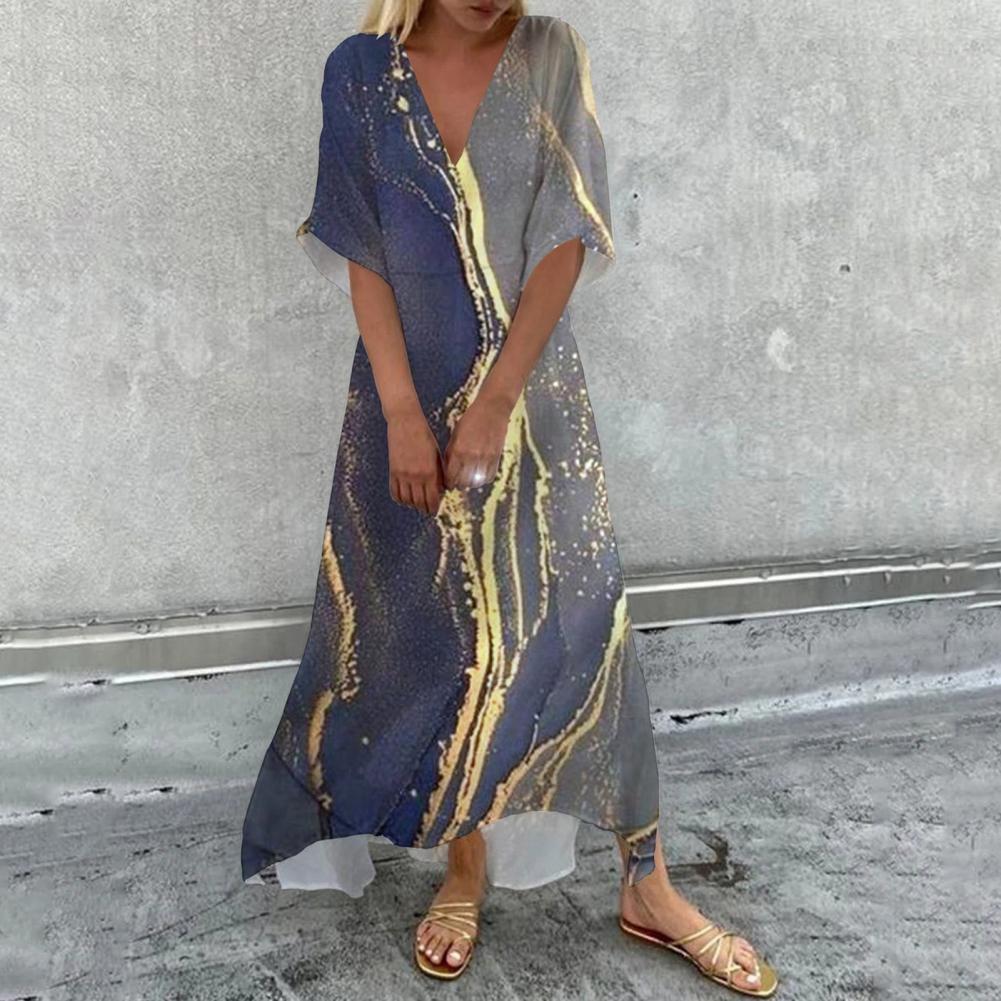 V-Neck Half Sleeve Large Hem Elegant Dress Vivid Flower Printing Ladies Loose Maxi Dress Mid-Rise Ankle Length Summer Dress