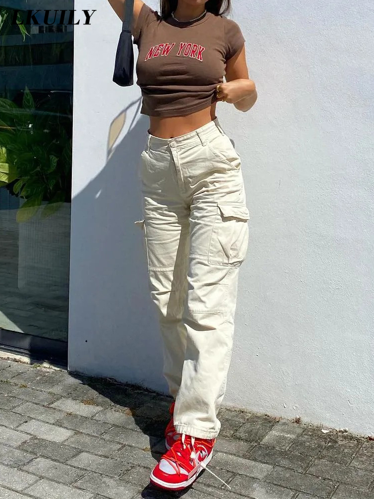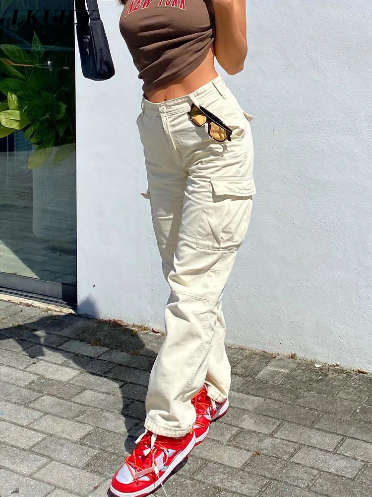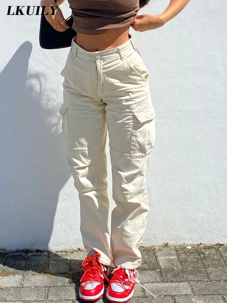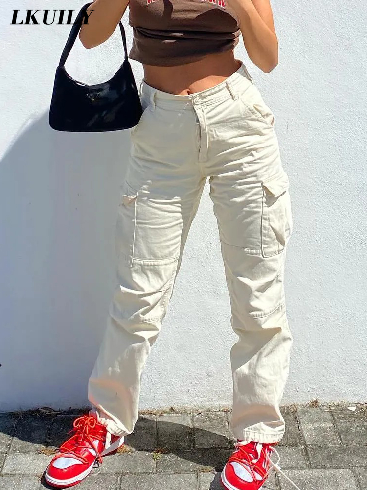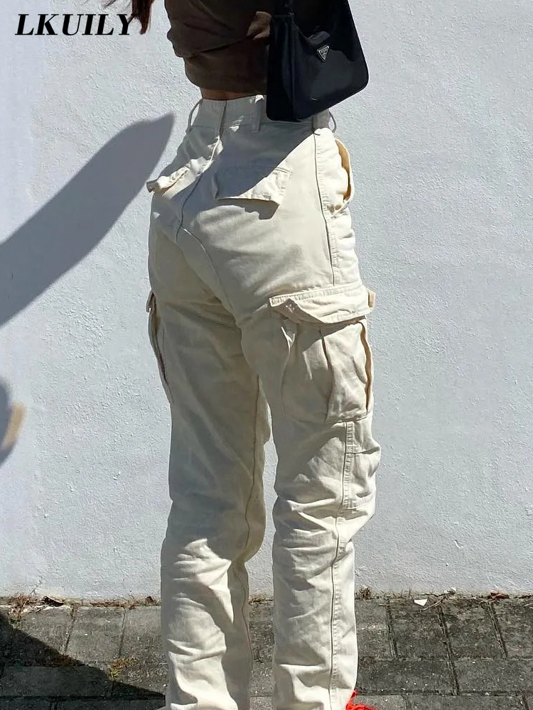 Vintage Cargo Pants Baggy Jeans Women 90s Streetwear Pockets Overalls ArmyGreen High Waist Loose Y2k Denim Trousers