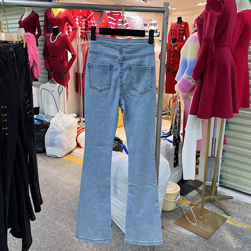 Vintage High Waist Elastic Slim Jeans Woman Split Flare Women Pants Single Breasted Spring Streetwear Denim Trousers