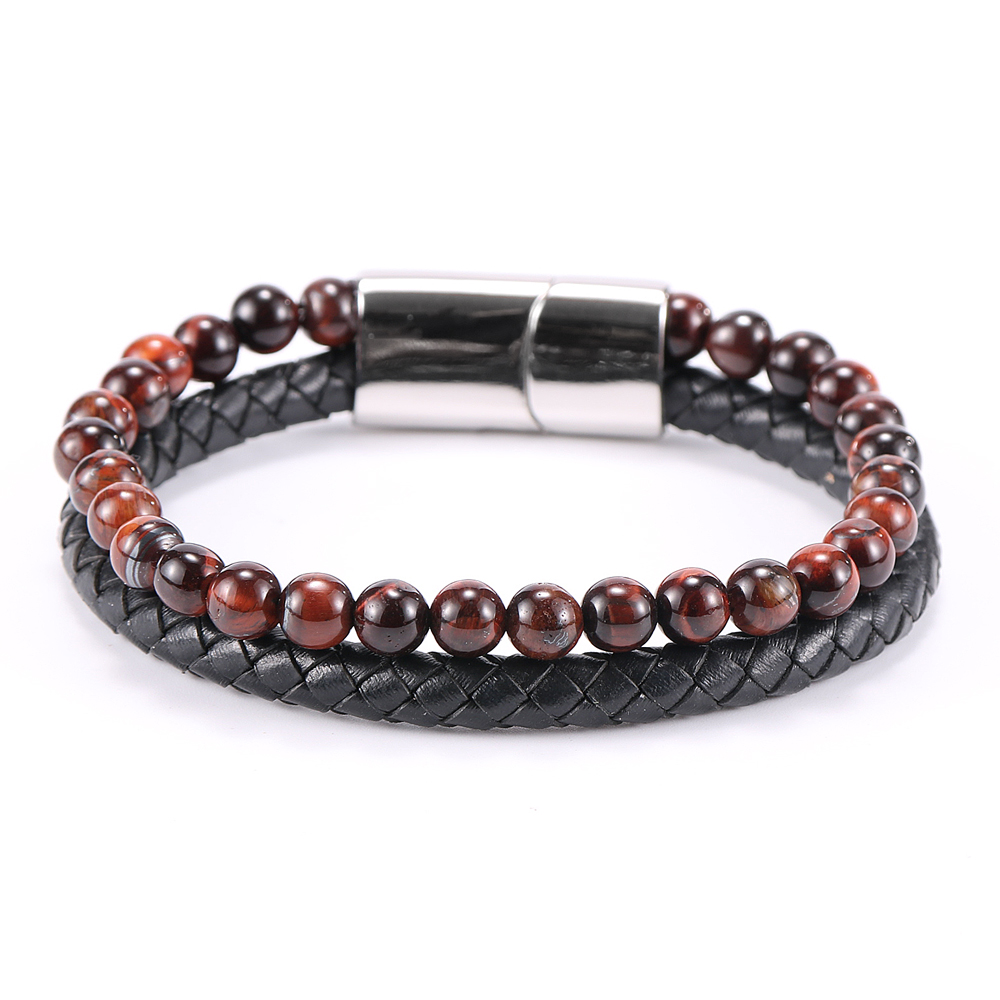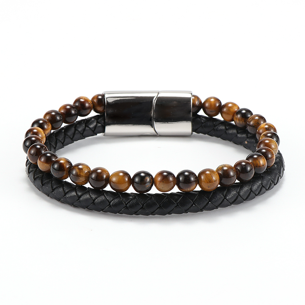 Unit : 1pcs Leather & natural stone bracelet for men