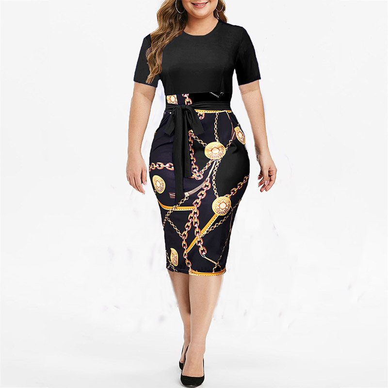 Vintage Print Knee-length Dress Womens Summer Short Sleeve Midi Elegant Dresses Summer Sexy High Waist Robe