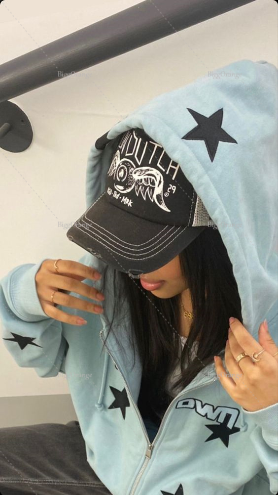 Vintage Sweatshirt Ladies Casual Star Print Design Zip Hoodie Ladies Hip Hop Loose Harajuku Punk Gothic Style Y2k Women's Top