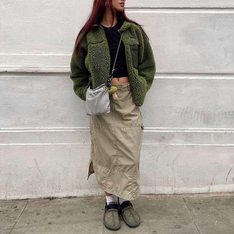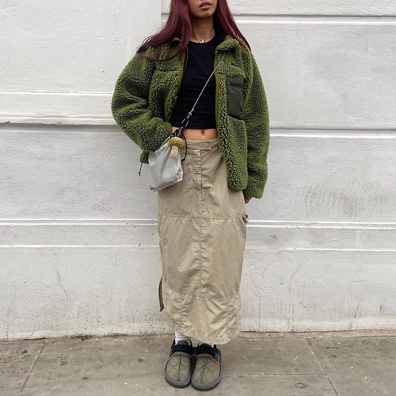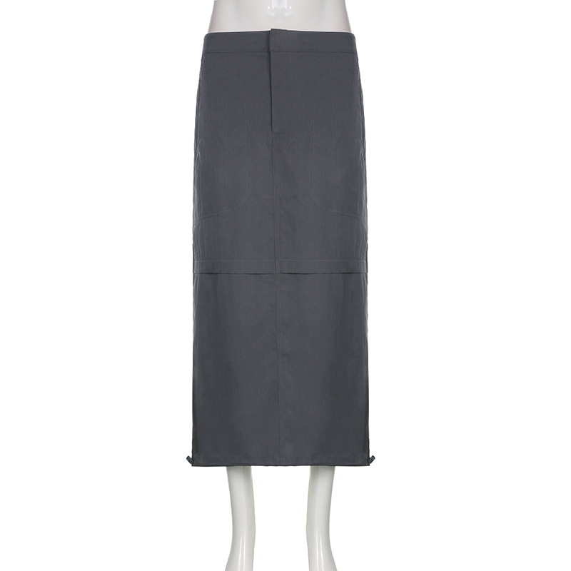 WeiYao Khaki Casual Long Cargo Skirts Women Stitching Vintage Baggy Streetwear Outfits Split Low Waist LooseSize Skirt