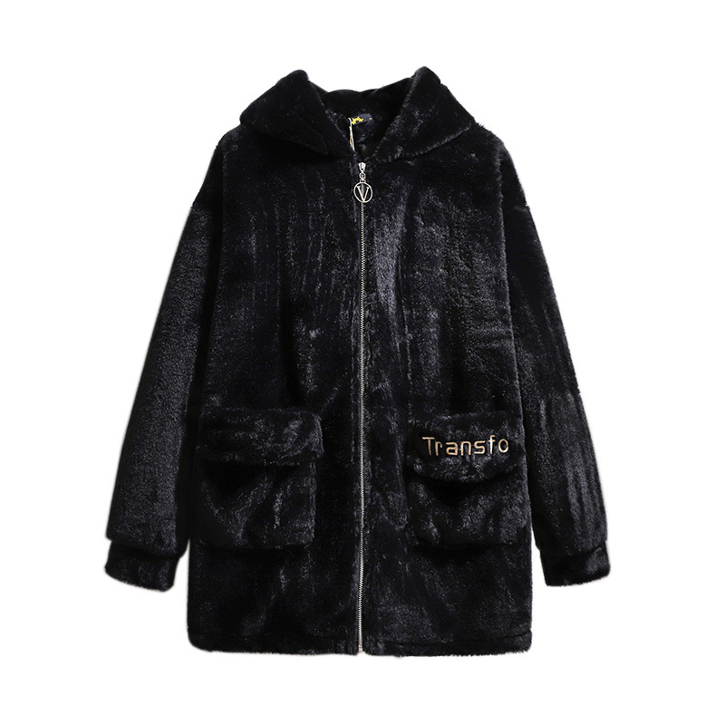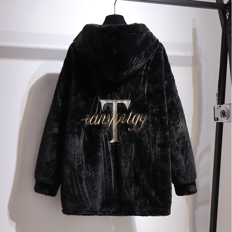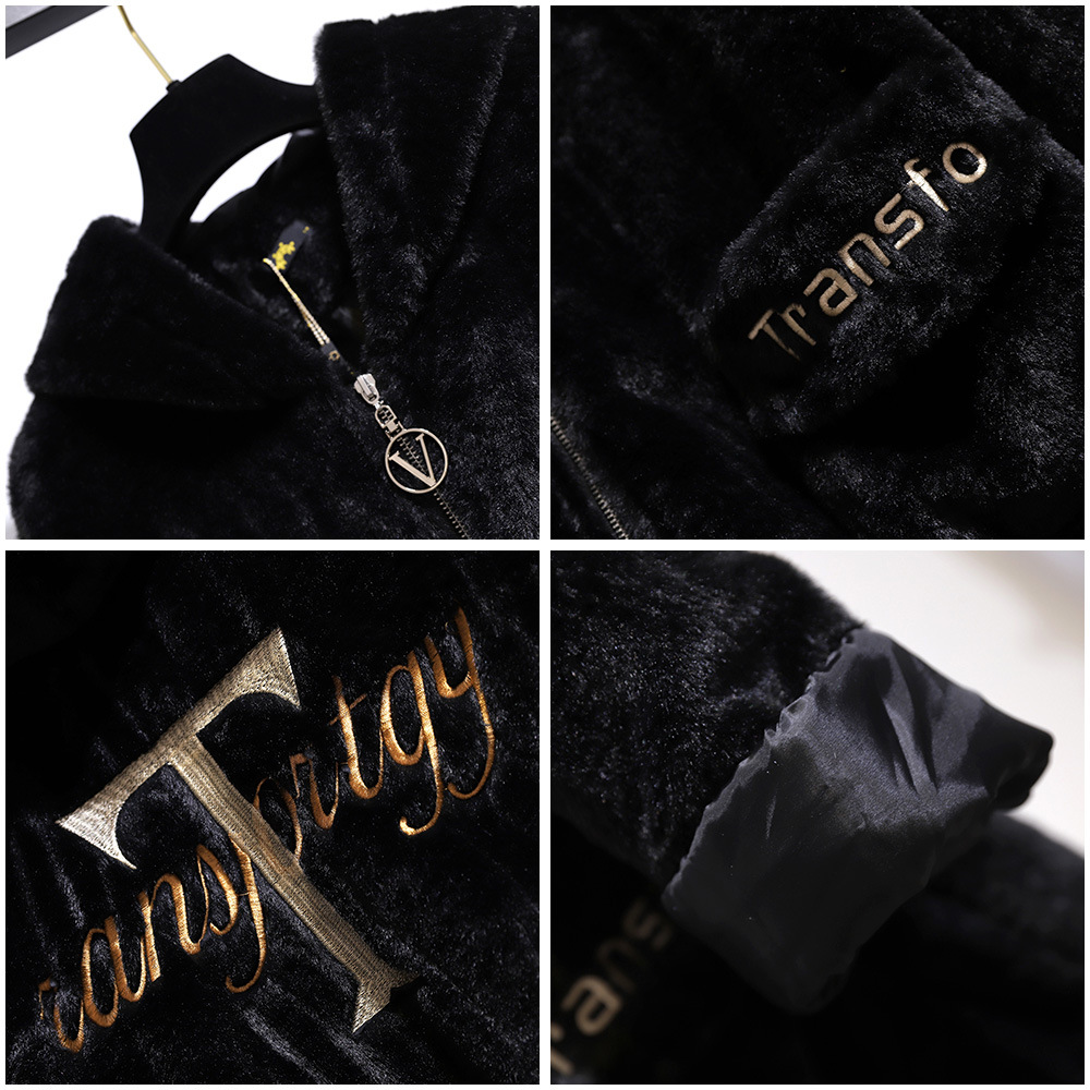 Winter Plus Size Women Clothing Hoodie Overcoat Large Long Sleeve Black Velvet Plush Thick Coat 3XL 4XL 5XL 6XL 7XL