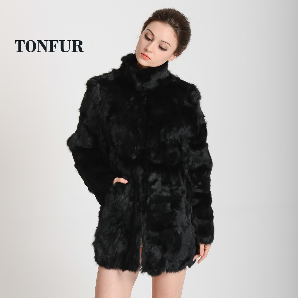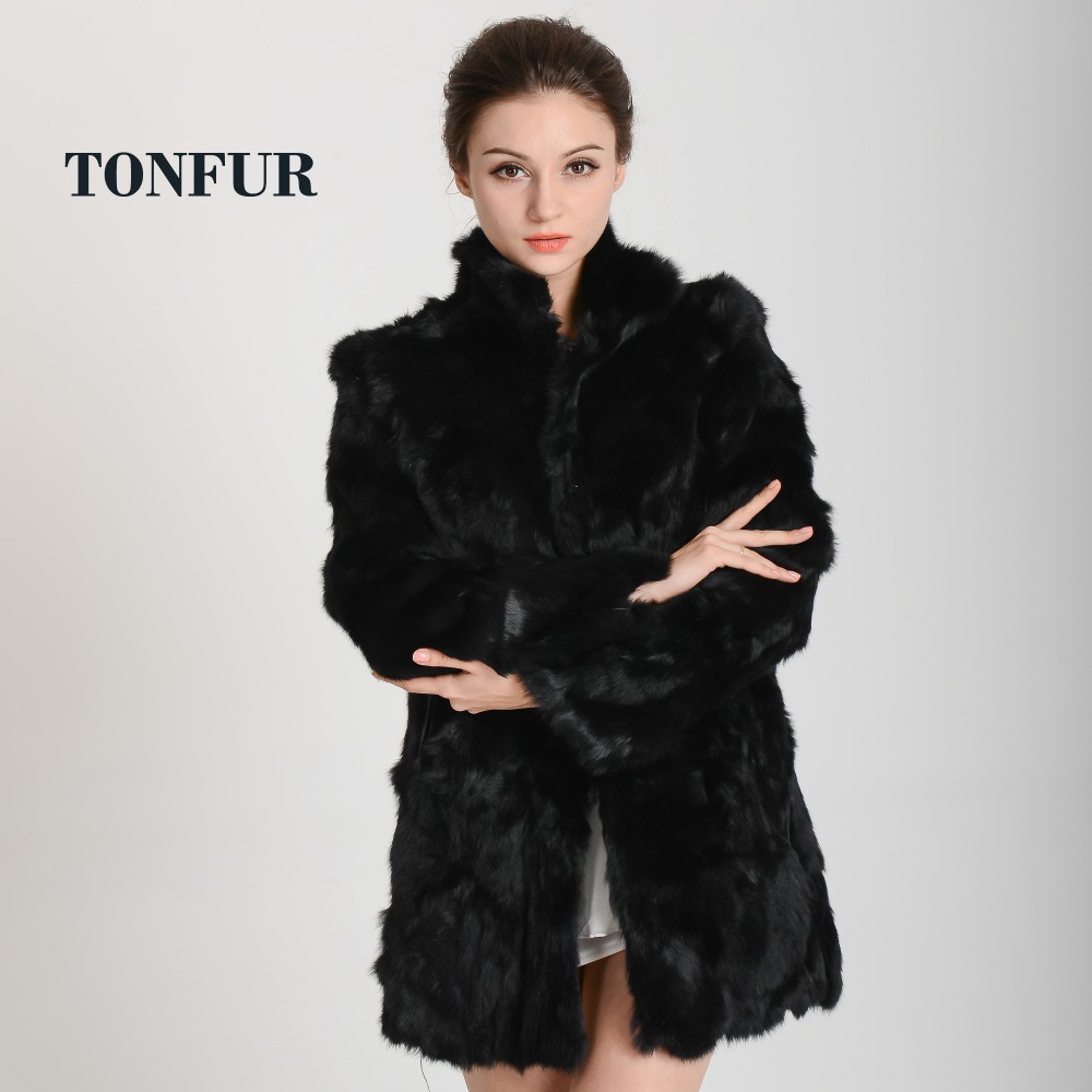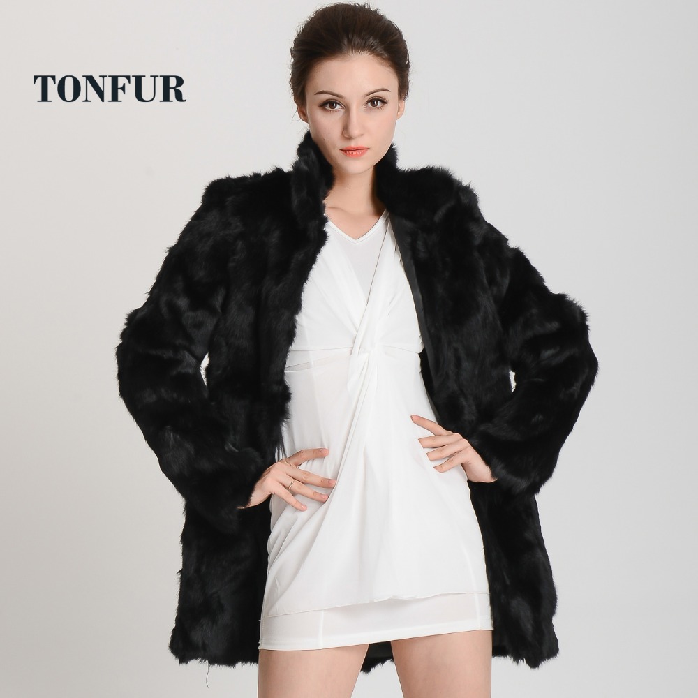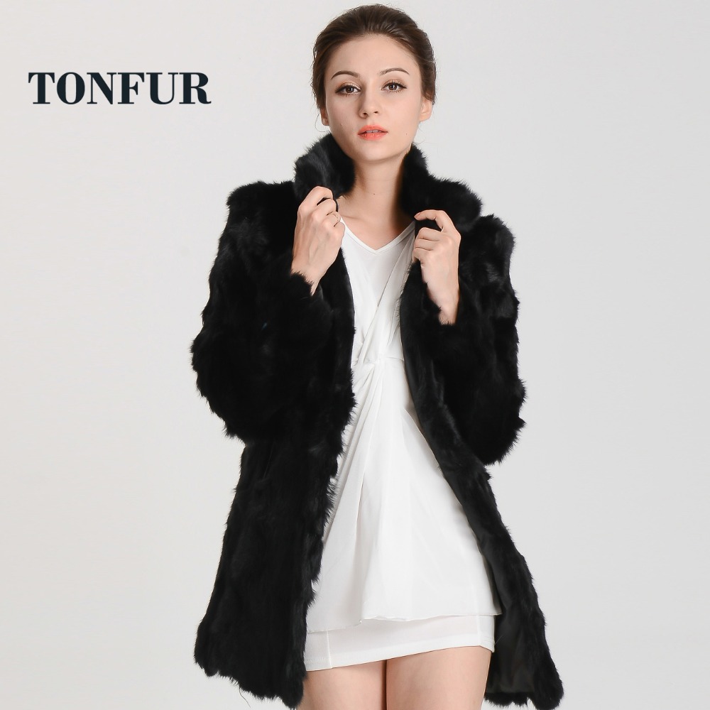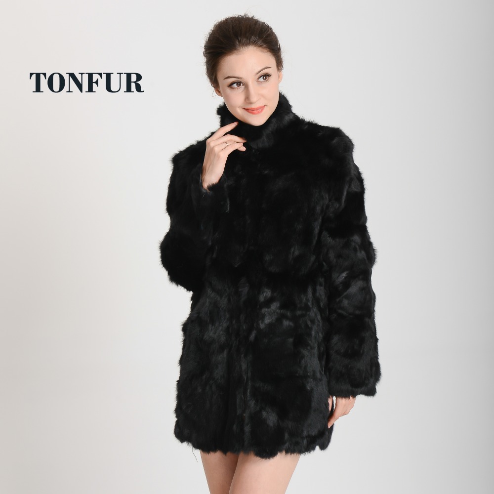 Women Real Rabbit Fur Coat Mandarin Collar Natural Fur Jacket Long Customize Female Dropshipping Overcoat HP147