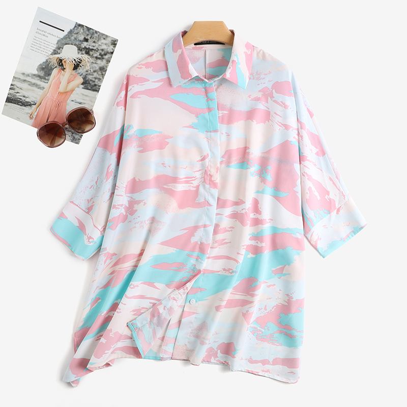 Women Bohemian Tie-dyed Shirt Spring Long Sleeve Muslim Abaya Blouse ZANZEA Vintage Loose Tunic Tops Casual Islamic Clothing