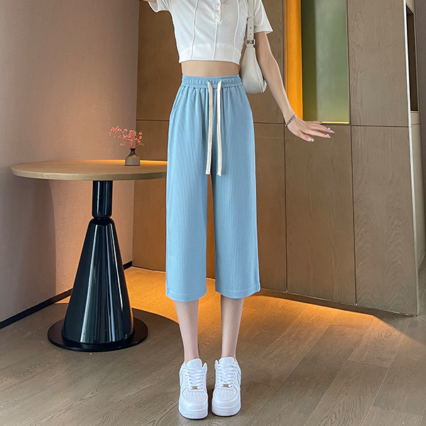 Women Capris Traf Straight Loose Wide Leg Short Pants High Waisted Casual Sweatpants Solid Trousers Y2K Summer