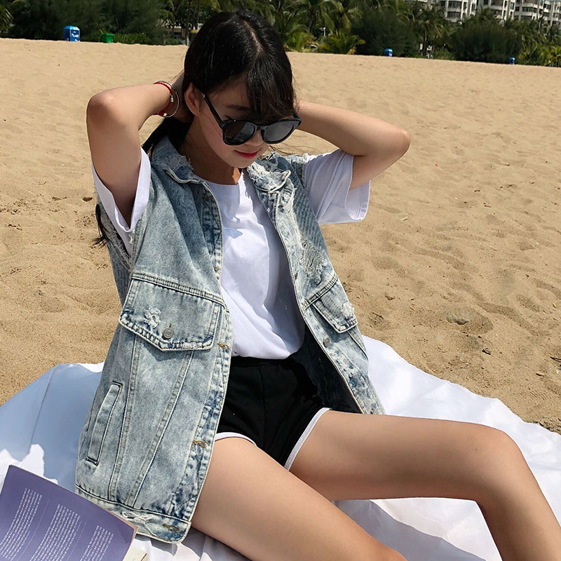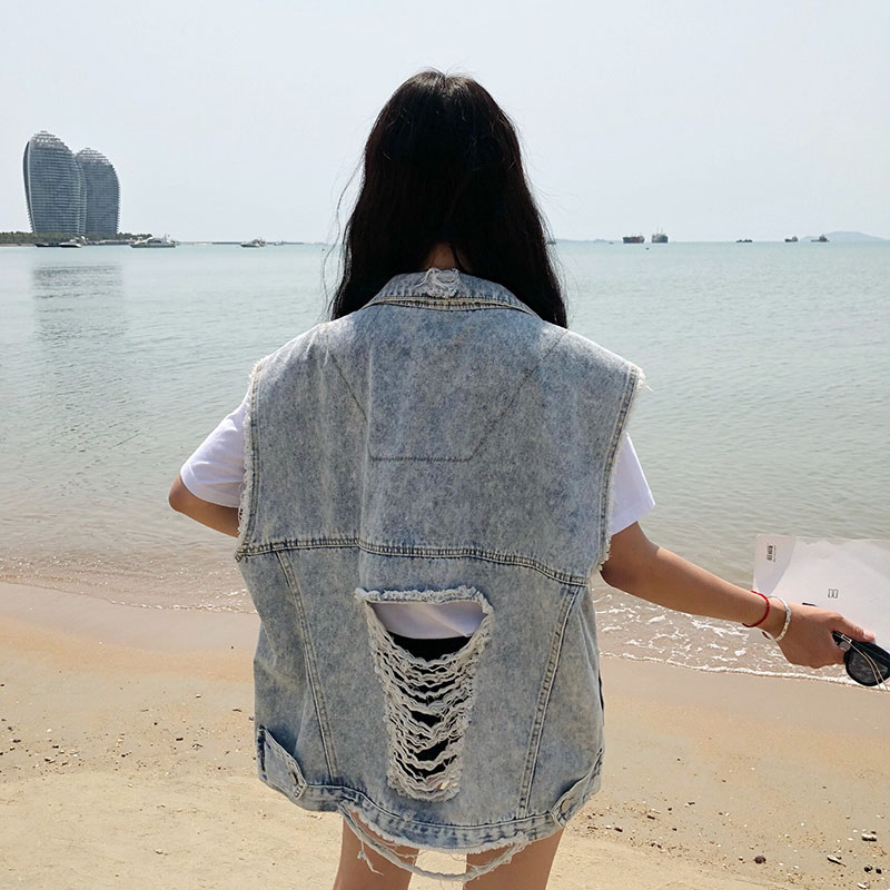 NEW Women Denim Vest Coat Free Size Open Stitch Hole Vintage Sleeveless Vest Jacket Women Vests Denim Cotton Waist Coat Clothing