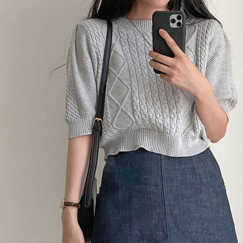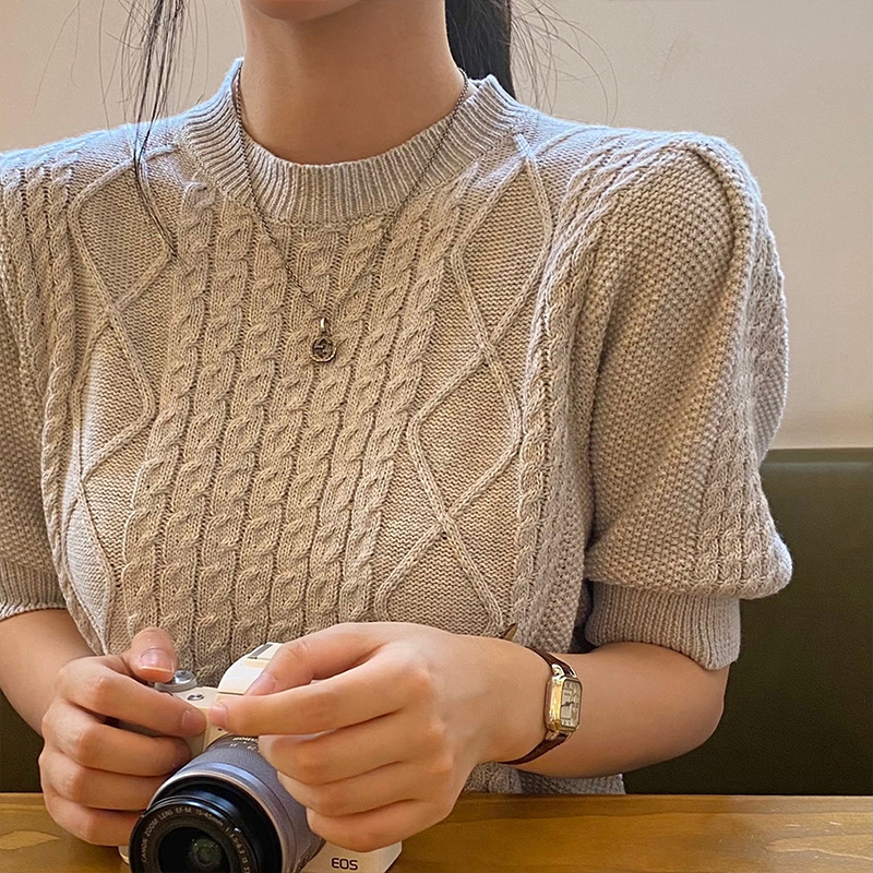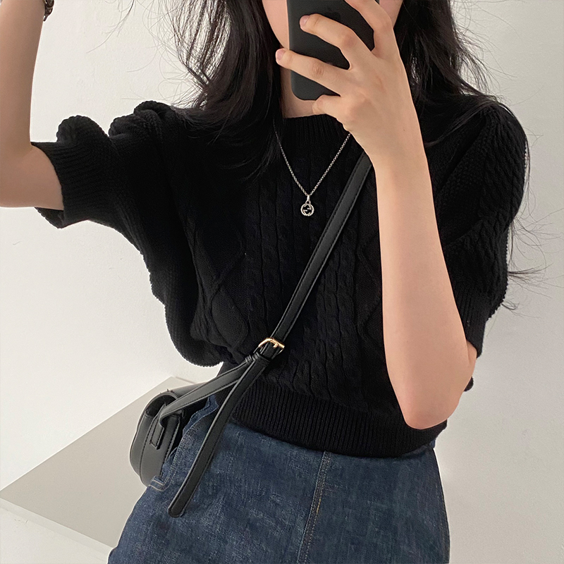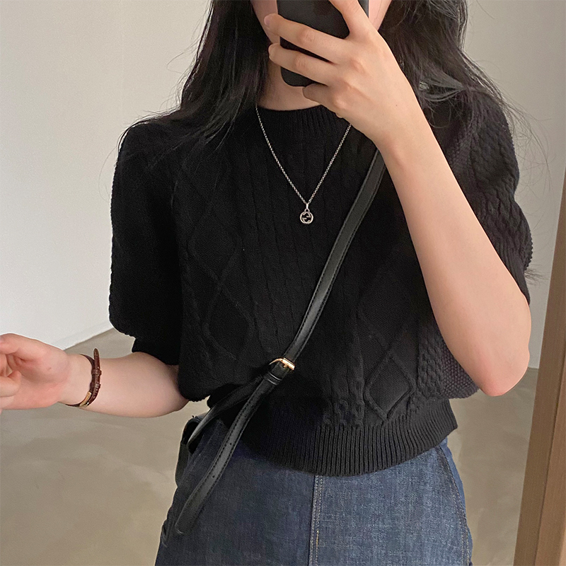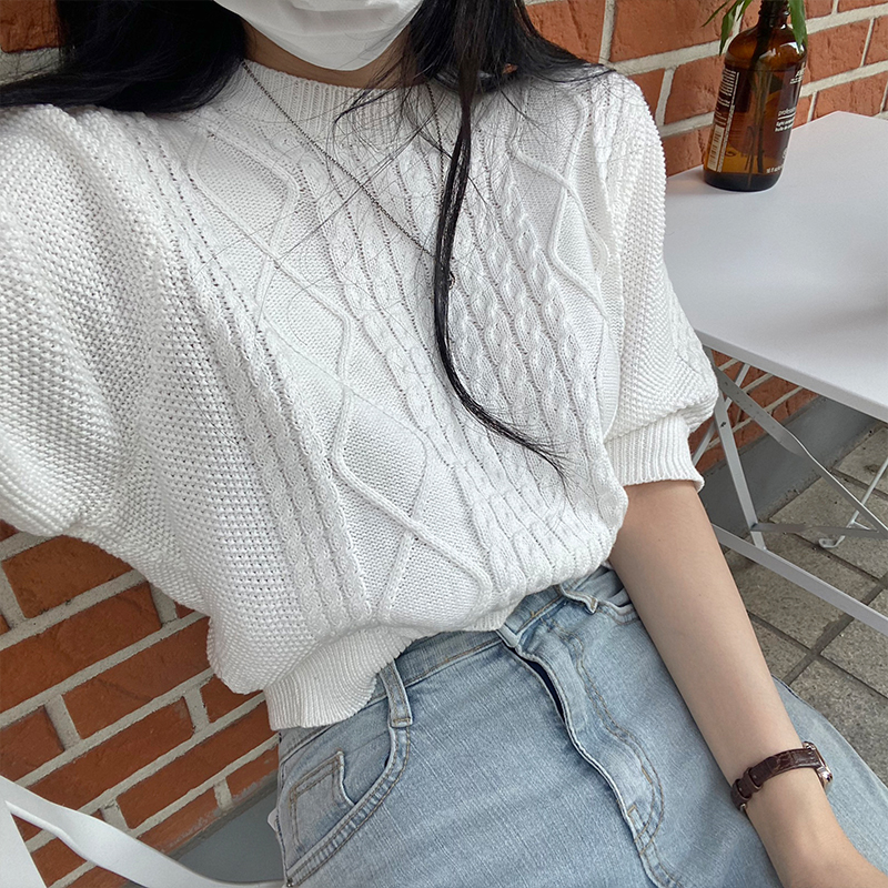Women French White Simplicity Knitting Sweater Round Neck Short Sleeve Casual Vintage Baggy Ladies Tops Summer