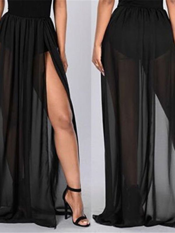 Model Number : Women High Waist Mesh Skirts Empire See Through Sheer Side Split Skirt