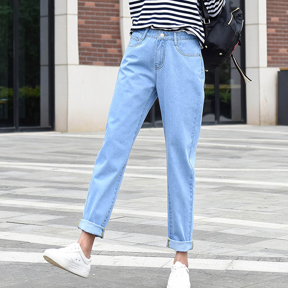 Women Jeans Vintage Straight Mom Jeans Loose Blue Denim Pants Ankle Length Trousers Female Casual Streetwear Harem Pants Jeans