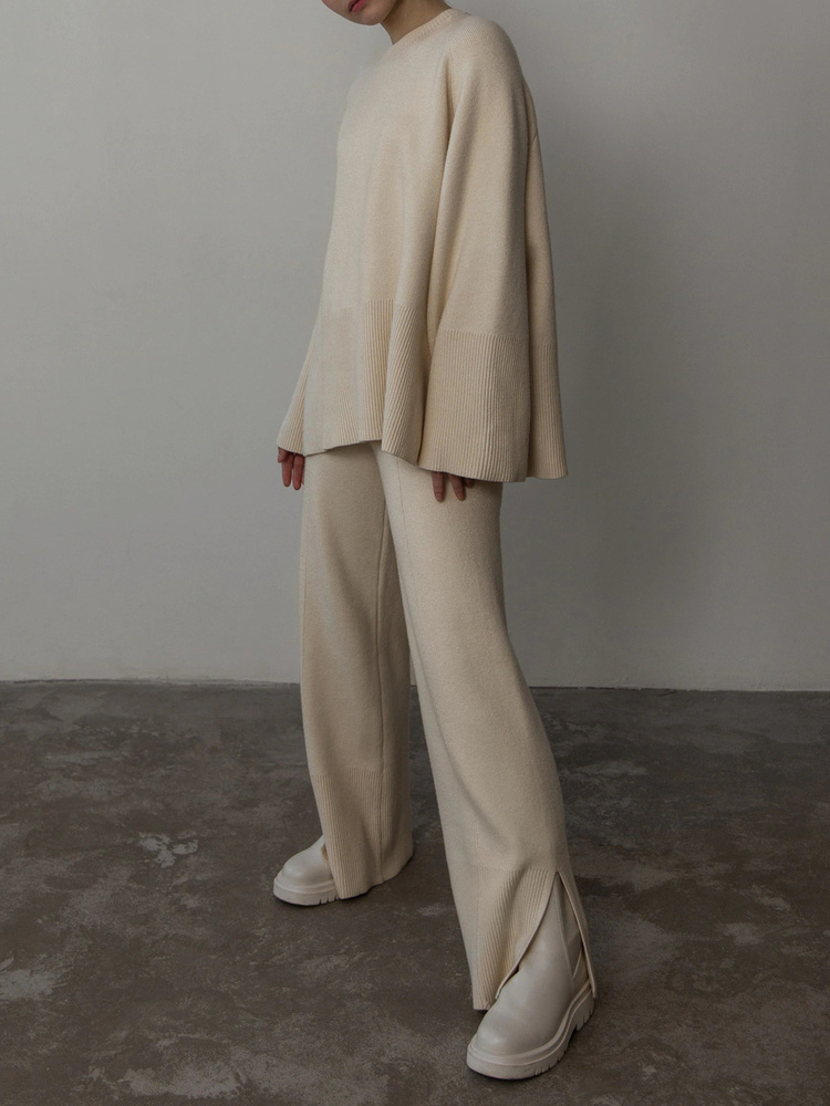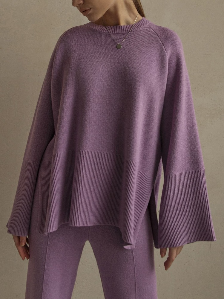 Women Knitted Pants Sets Lilac Casual Loose Two Piece Sweater Sets Autumn Winter Sweater Pullover and Wide Leg Pants Suits