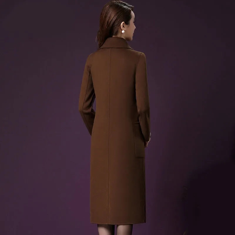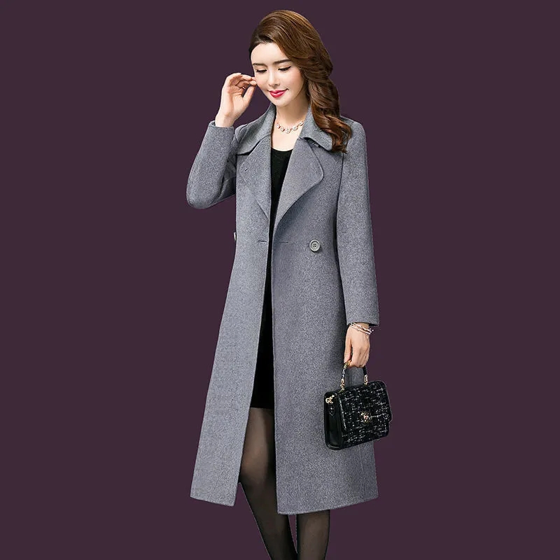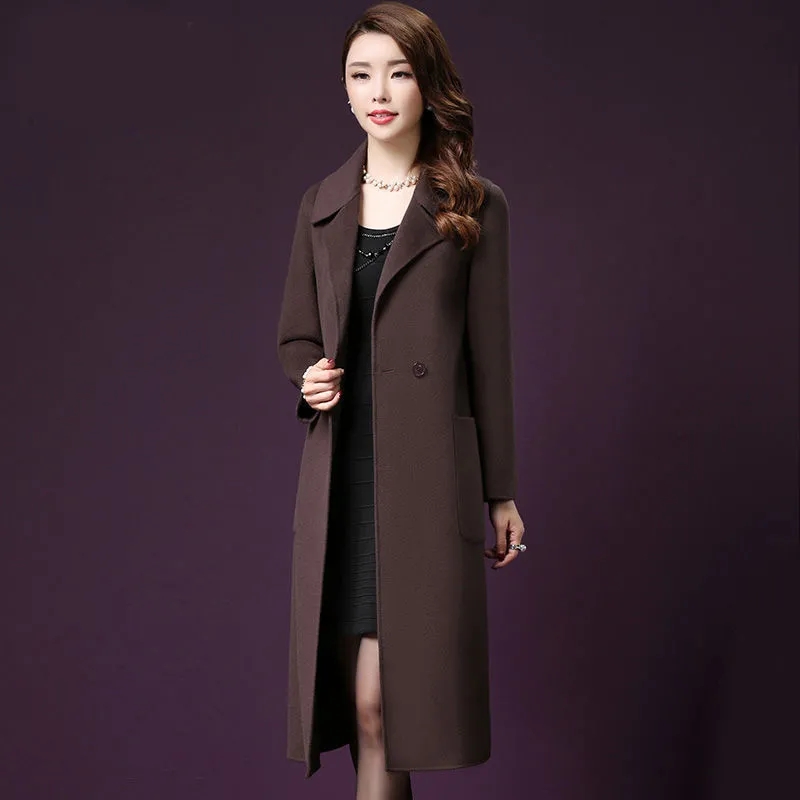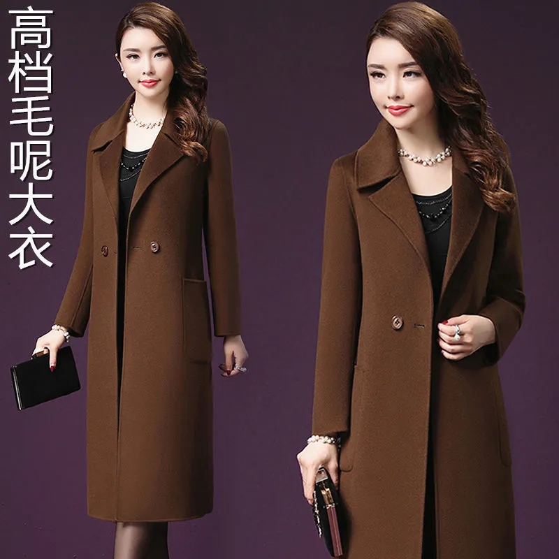 Women Mid-length Woolen Coat Fall/winter Mothers Wear Middle-aged Woolen Coat Female Slim Long-sleeved Jacket A787