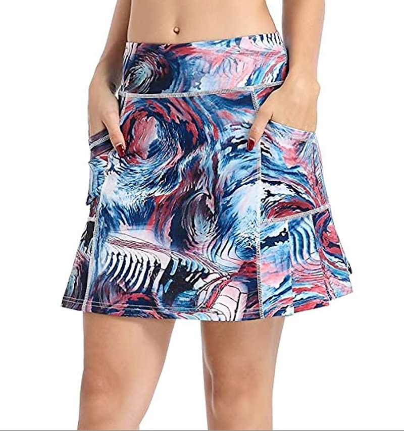 Women Mini Skirt Tie-dye Print High Waist Two Layers with Pocket Skirt Workout Fitness Sport Skorts Golf Tennis Running Skirts