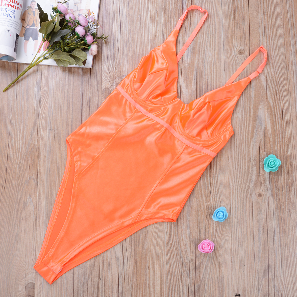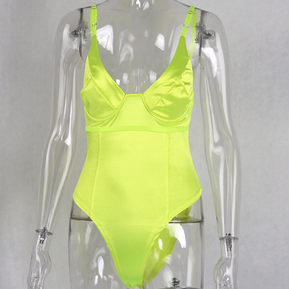 Women Sexy Sling Deep V neck Sleeveless Bodysuit Stretch Leotard Body Suit Ladies Tops Leotard Skinny Jumpsuit Yellow Rose Red