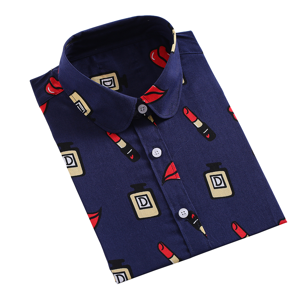 Women Shirts Long Sleeve Cotton Blouse Print Cherry Lips Flower Top Shirts For Women Autumn Under Shirt Ladies Office
