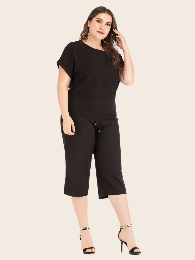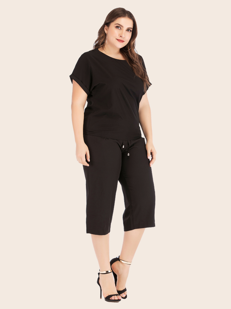 Women Summer Casual Plus Size Solid Athflow Style Sportswear Suit Oversize Two Piece Set Athleisure Drawstring Pants