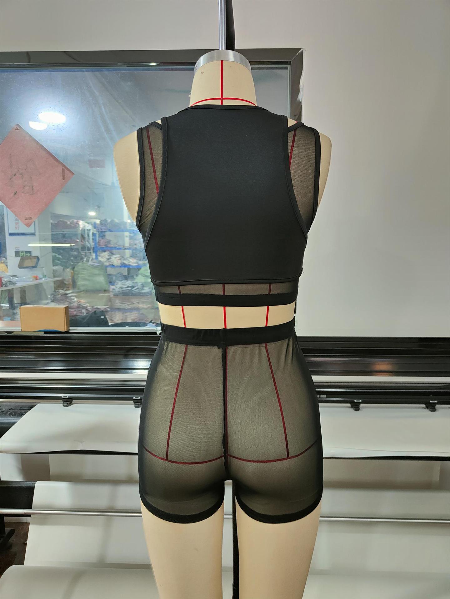 Women Summer Sexy Sheer Mesh Sleeveless Tank Crop Top + Shorts See Through Club Party Tracksuit Outfits Casual Black 2 Piece Set