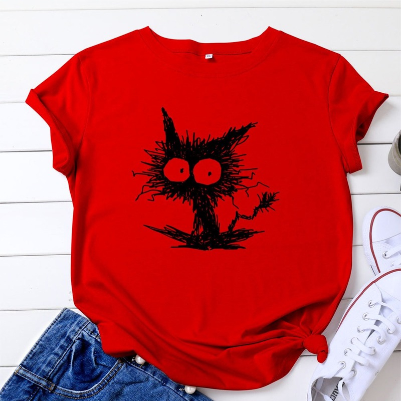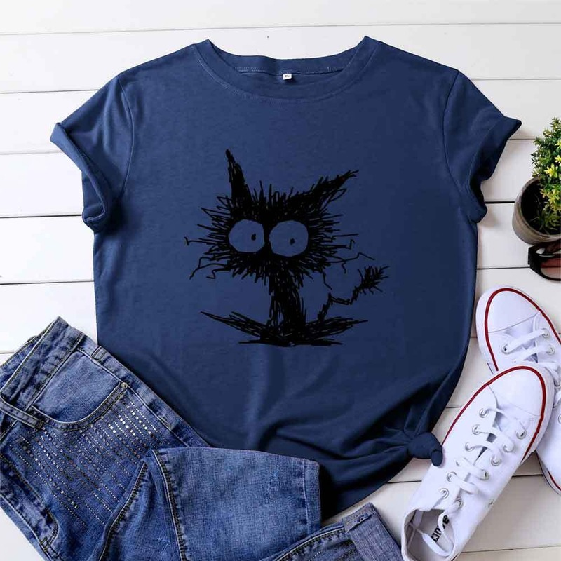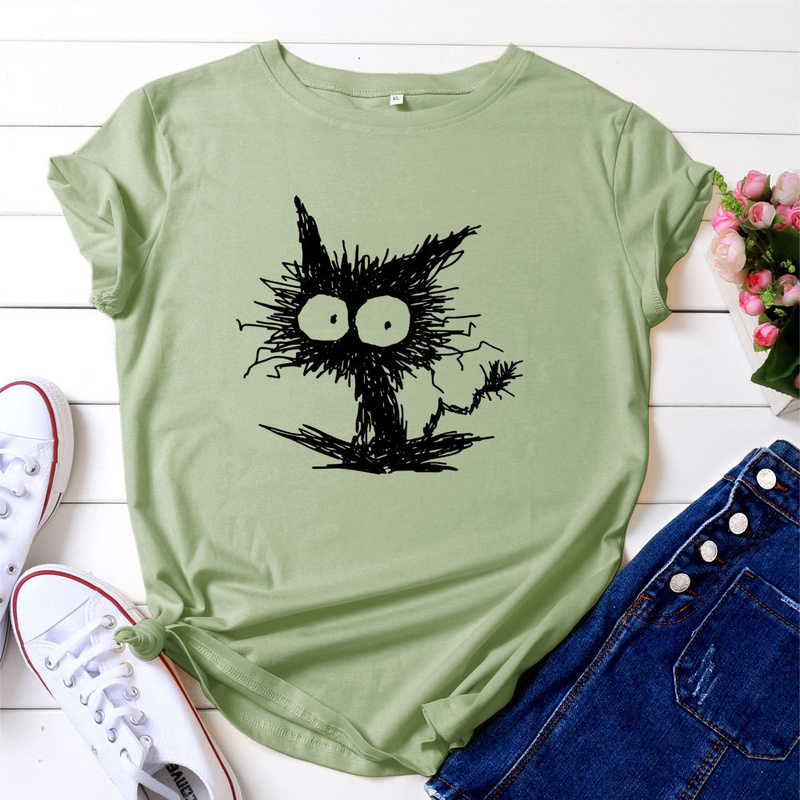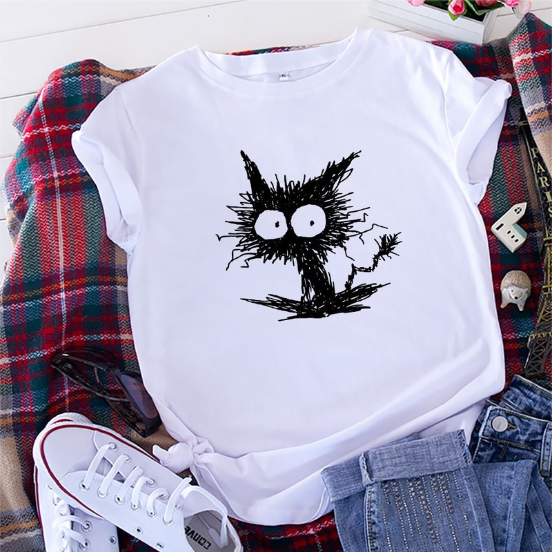 Women Summer Tshirt Cotton Casual Cat Printing Female Graphic Kawaii T Shirts Ladies Regular Short Sleeve Tees Tops