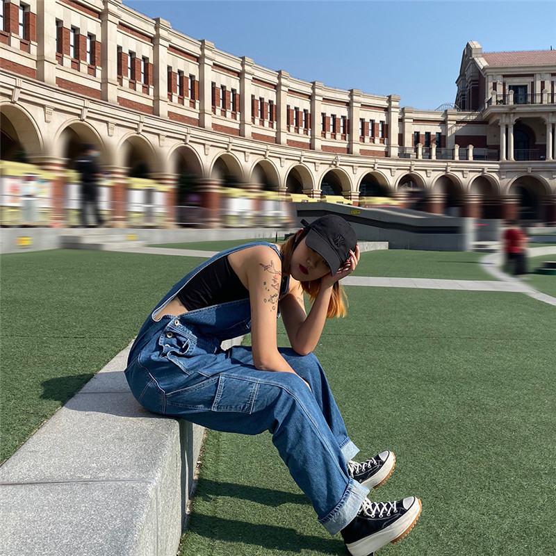 Women's Denim Overalls, Hip-hop tapered Overalls, Loose Casual Jumpsuits, version of large size 26-48 50 Denim Overalls