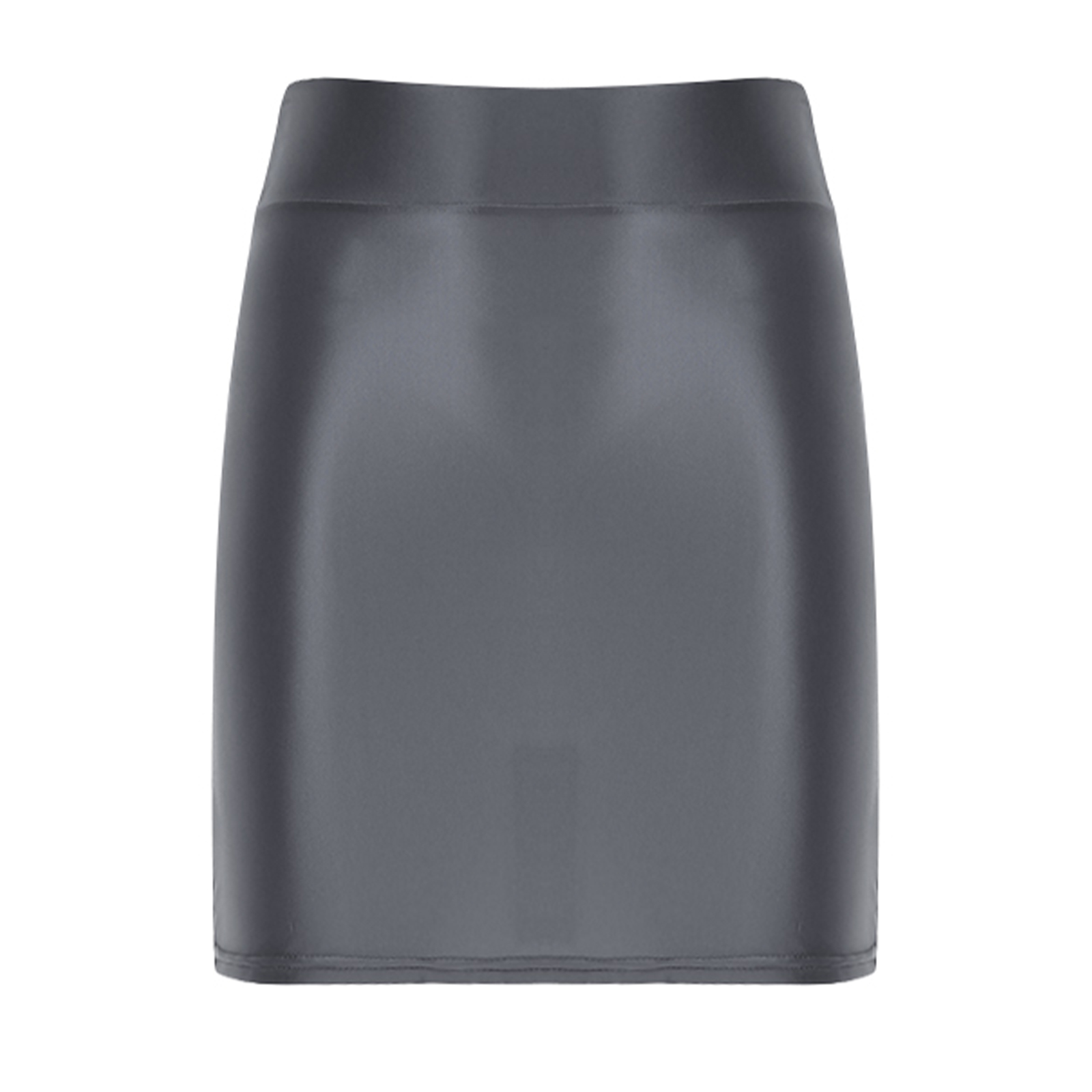 Womens Glossy Solid Color Pencil Skirt Casual High Waist Elastic Waistband Miniskirt.