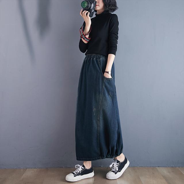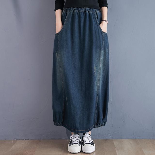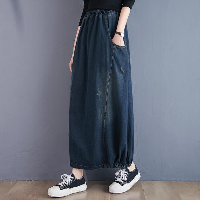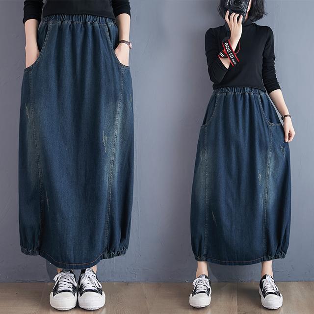 Women's Spring Summer Long Denim Skirts Female Loose Casual Straight Skirts Ladies High Waist Jeans Skirts I115