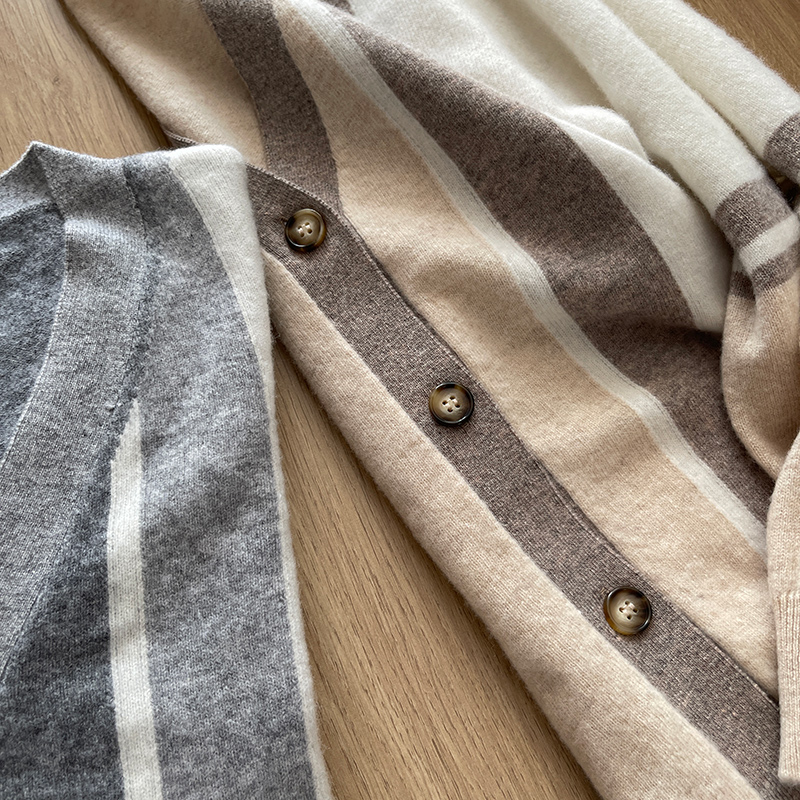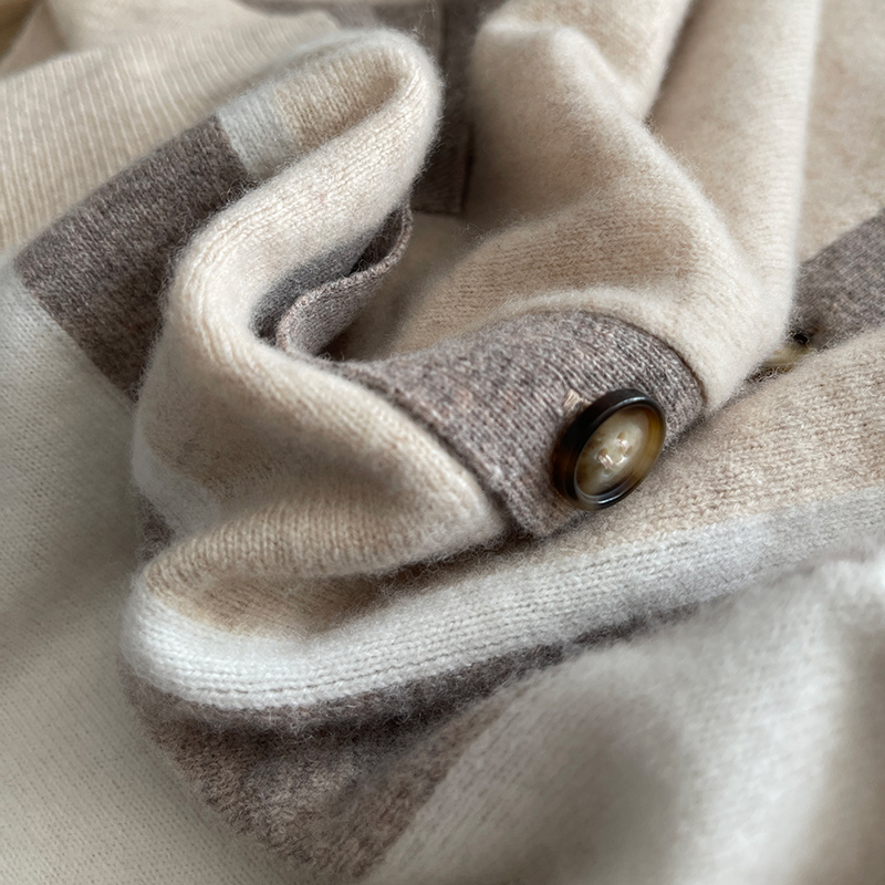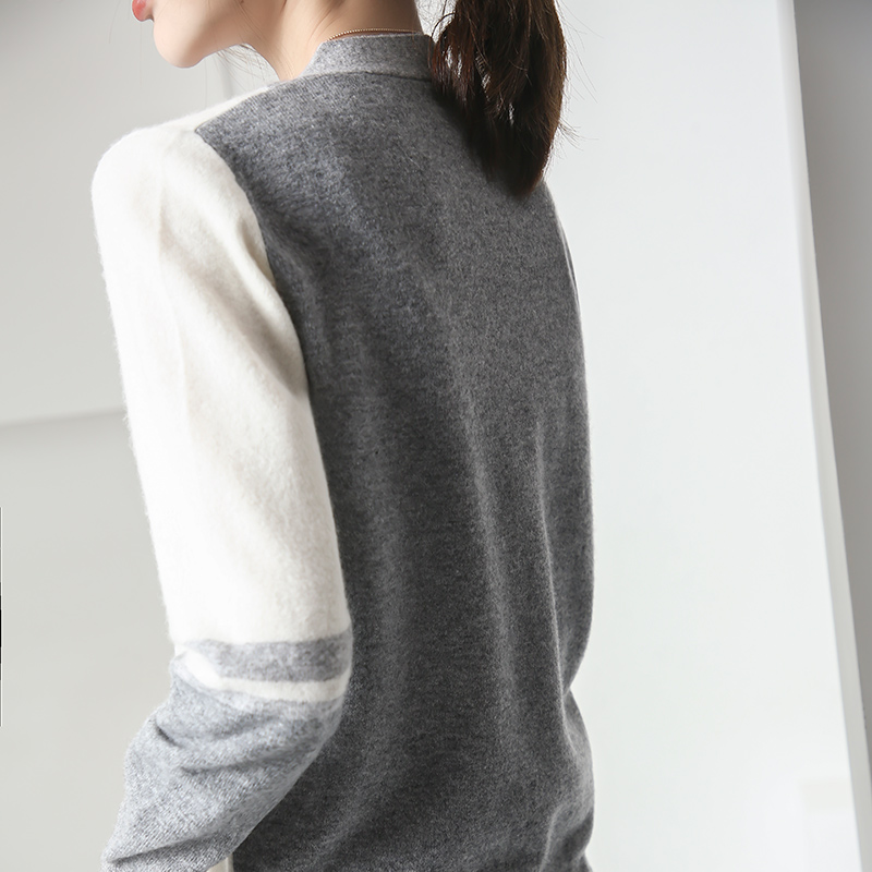 Wool Knit Cardigan Women's Long Sleeve Jacket Spring and Autumn Basic V-Neck Top Chic Colorblock Cashmere Sweater XL