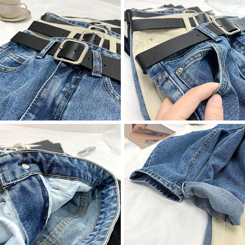 Xpqbb Summer High Waist Women Jeans Washed Casual Loose Harem Pants Female Solid Simple with Belt Student Denim Trousers