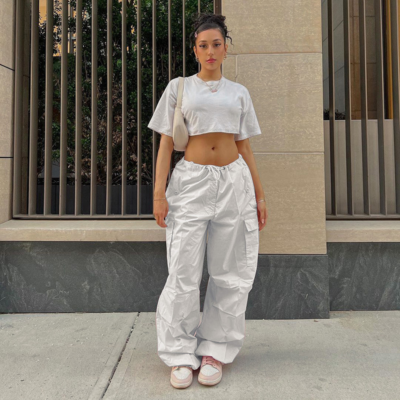 Y2K Clothing Oversized Drawstring Low Waist Parachute Loose Fit Sweatpants Trousers Women Jogger Cargo Pants Streetwear Outfits
