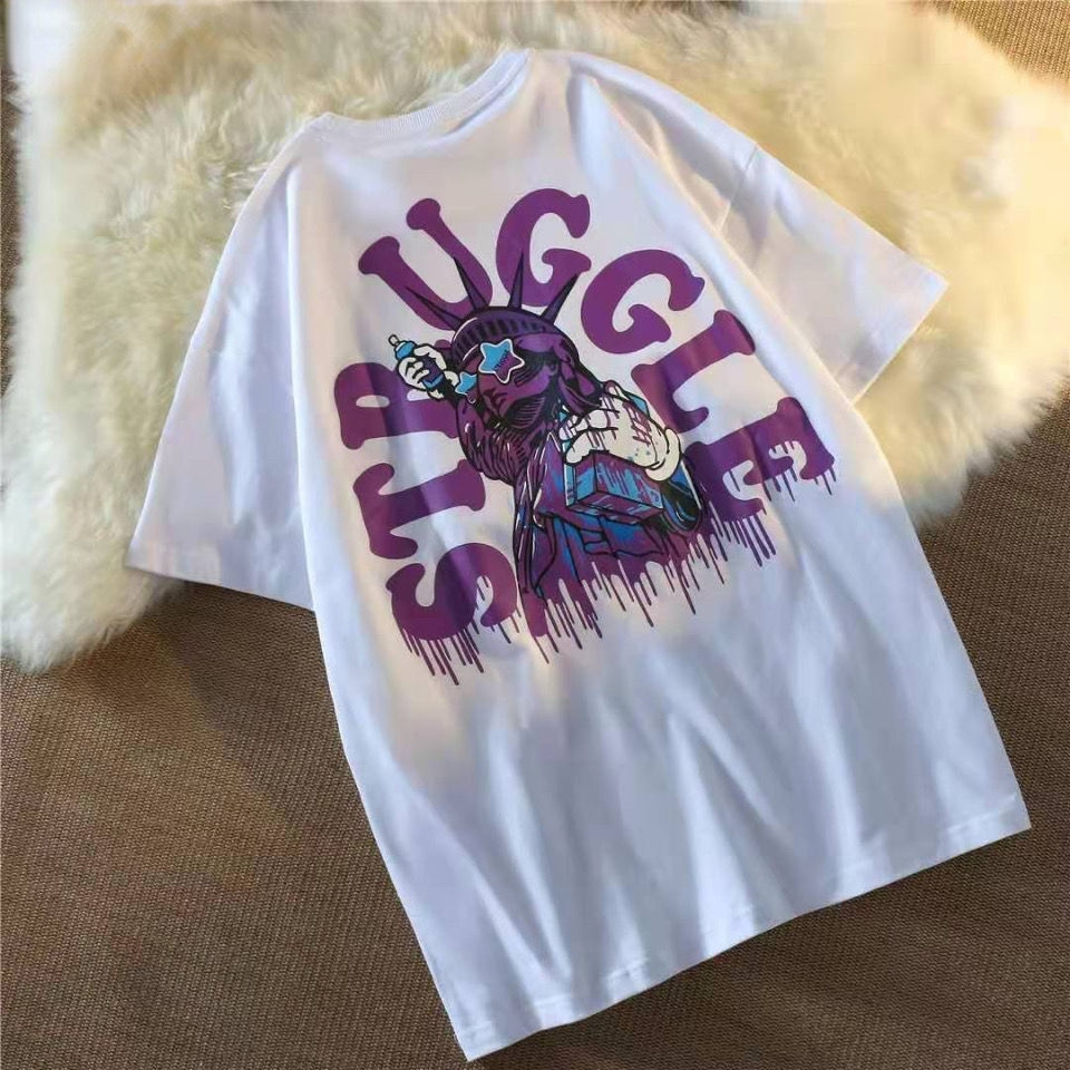 Y2k Women T Shirts Oversized Short Sleeve T-shirt Letter Anime Print Hip Hop Loose Style All Match Students Simple Goth