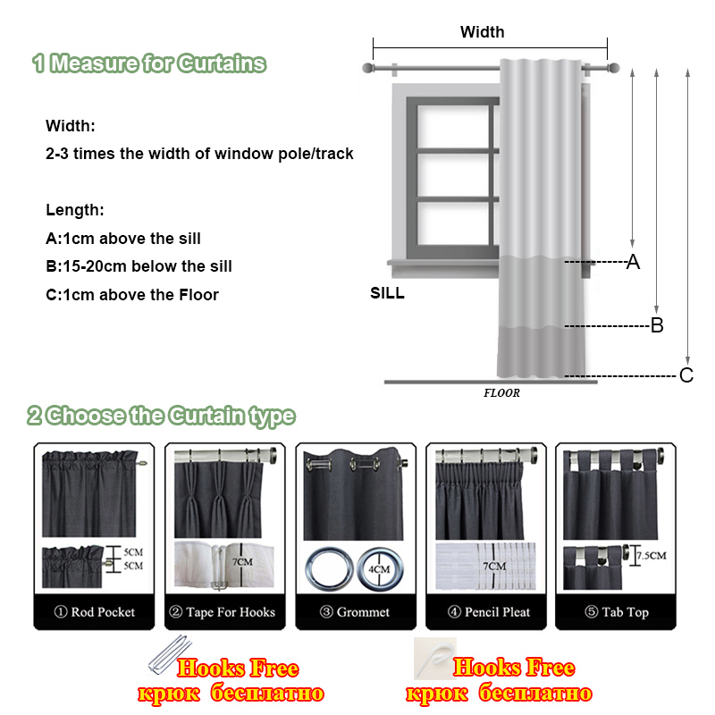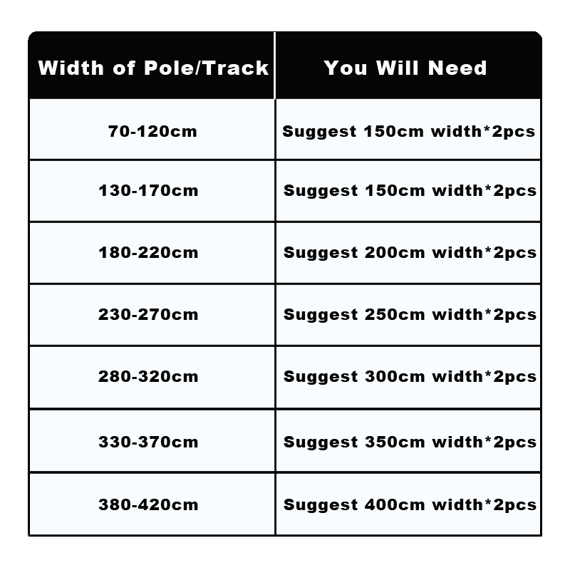 Curtain Width : 2~3 times of the window width