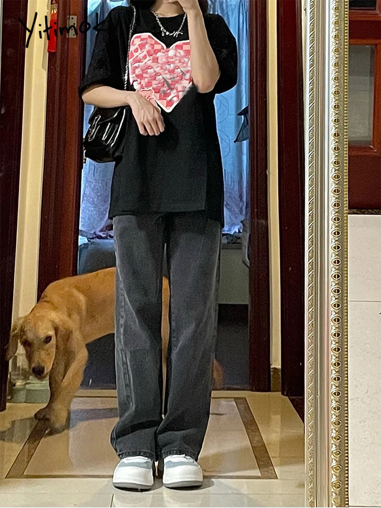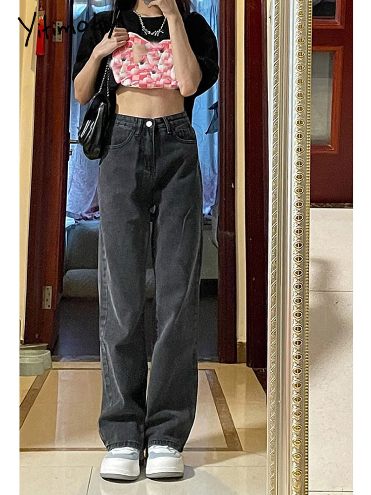 Yitimoky Baggy Jeans Women Vintage 4XL Ankle-length Style Harajuku Wide Leg Denim Retro All-match High Waist Women Trousers Y2k