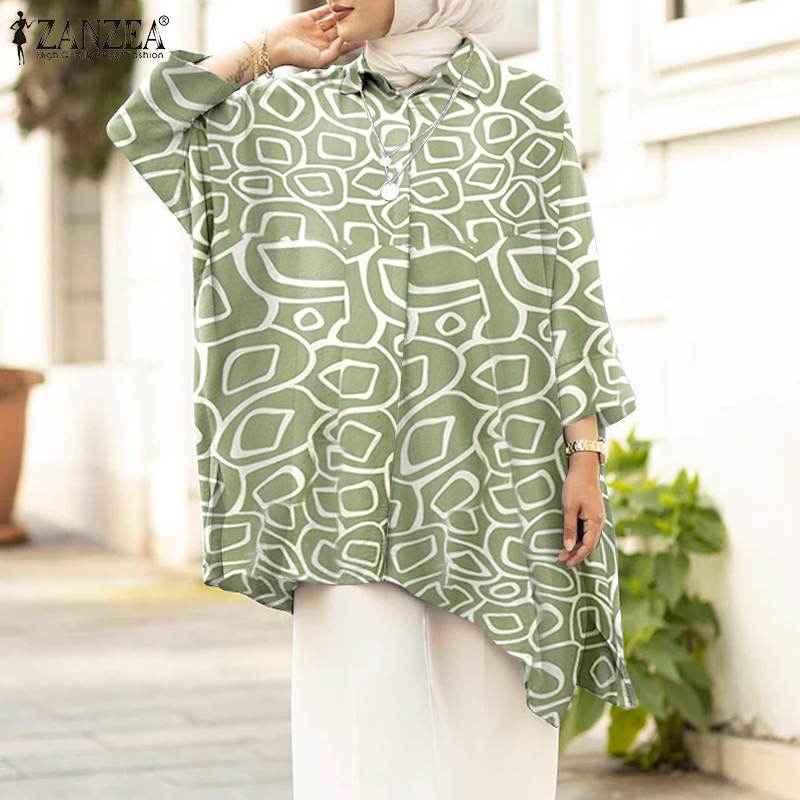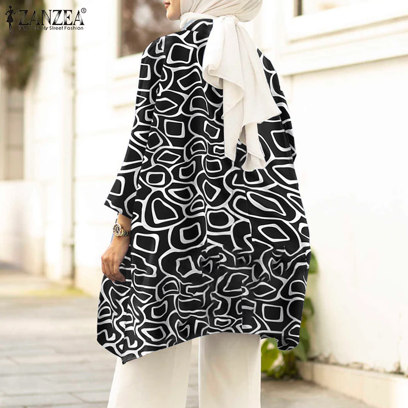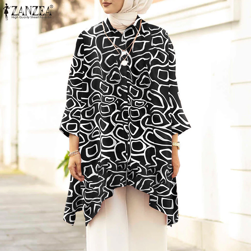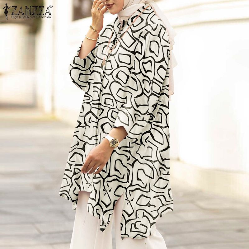 ZANZEA High Low Autumn Solid Muslim Shirts Women's Blouse Casual Retro Long Sleeve Turkish Blusas Female Buttons Islam Clothing