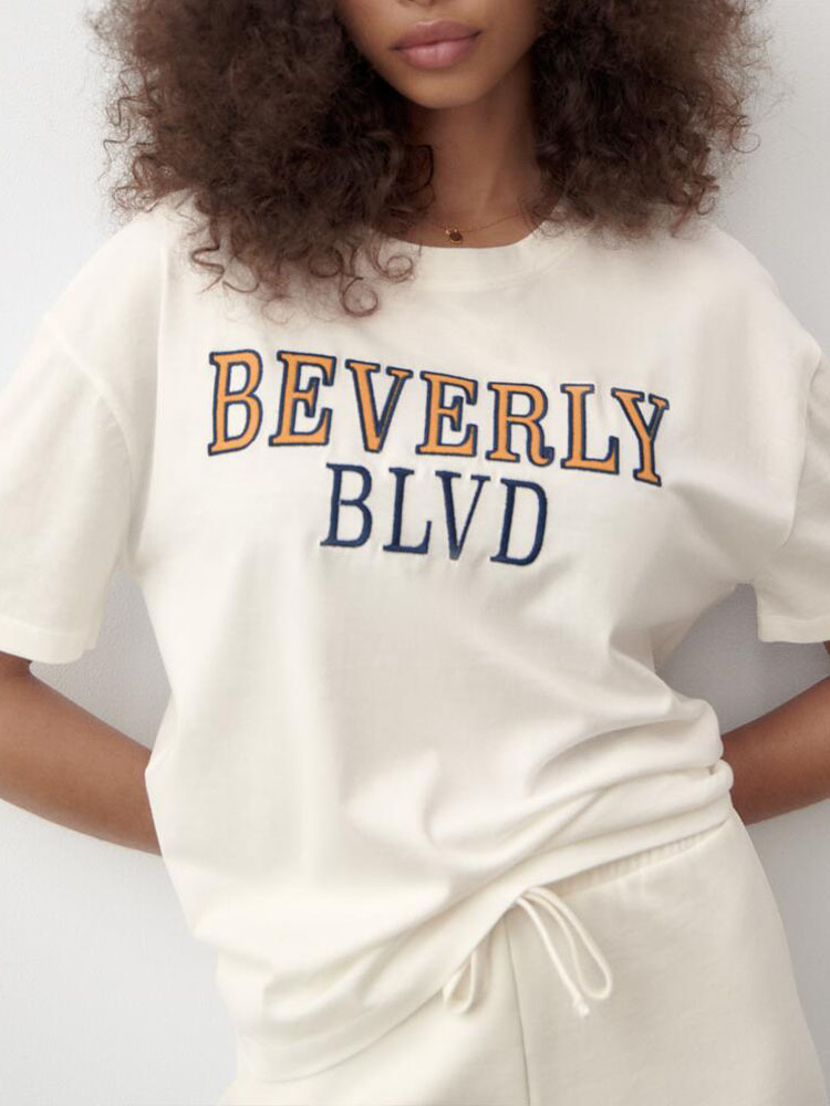 Zach AiIsa spring age-reducing all-match sports style letter embroidery T-shirt + elastic high waist sports casual pants