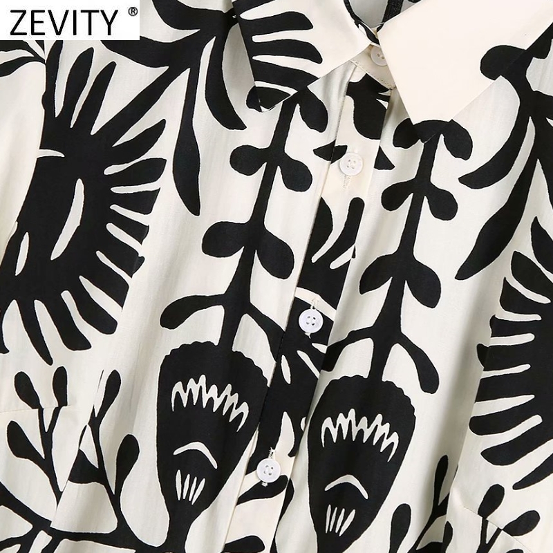 Zevity Women Vintage Black Totem Print Bow Sashes Shirt Dress Female Chic Three Quarter Sleeve Casual Slim Midi Vestidos DS8640