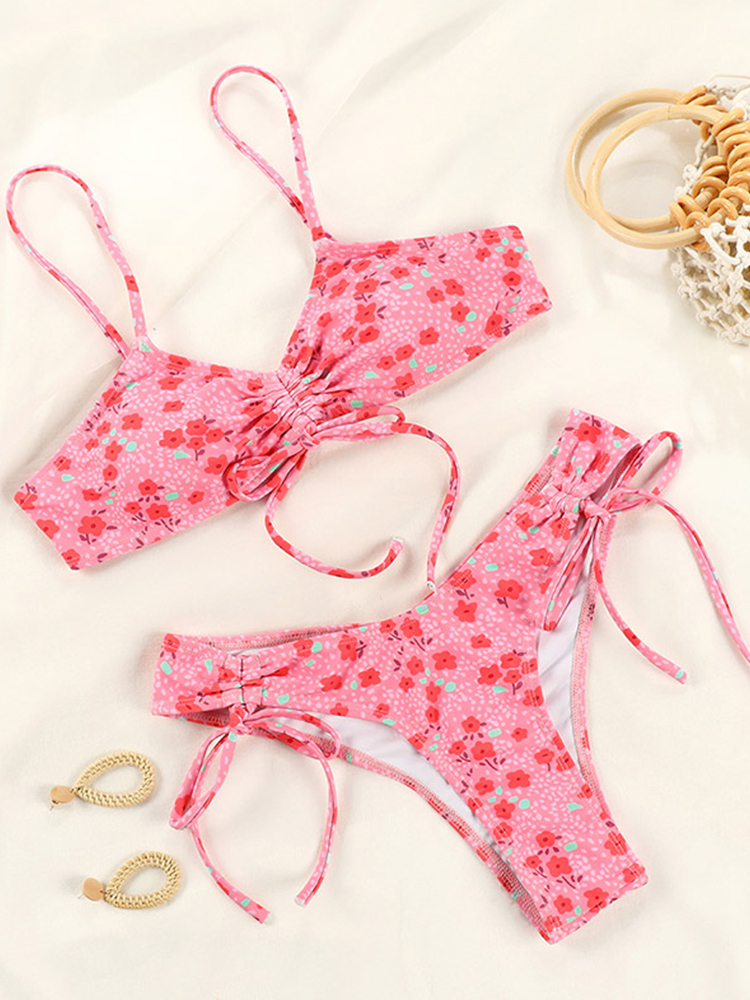 Zrtak Push Up Bikinis String Swimwear Women Sexy Drawstring Swimming Suit For Women Vintage Print Bikini Set Dot Swimsuit